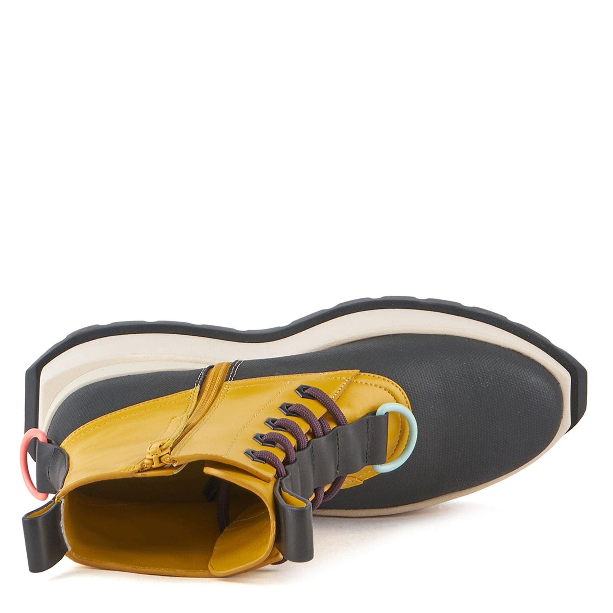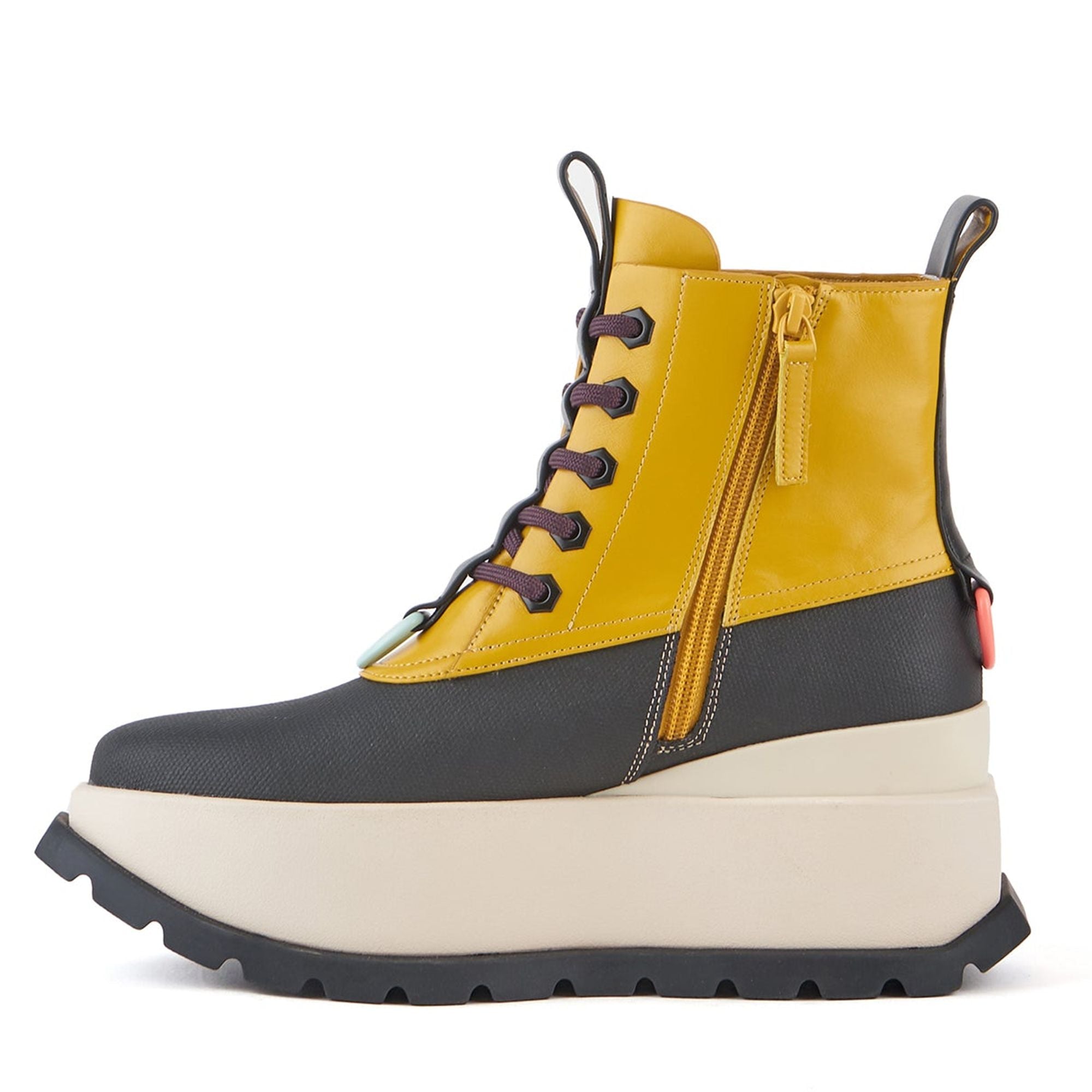 Ботинки Roko Patrol - это функциональная модель со шнуровкой для повседневной носки, с верхом из растительной кожи и прорезиненного нейлона, смелой рифленой подошвой, фирменным дизайном UN, фирменными подтяжками и узнаваемым блочным логотипом. Примечание к продукту: промежуточная подошва изготовлена из полиуретана - прочного, легкого и гибкого материала с тонкими микропорами, текстура которых может меняться.