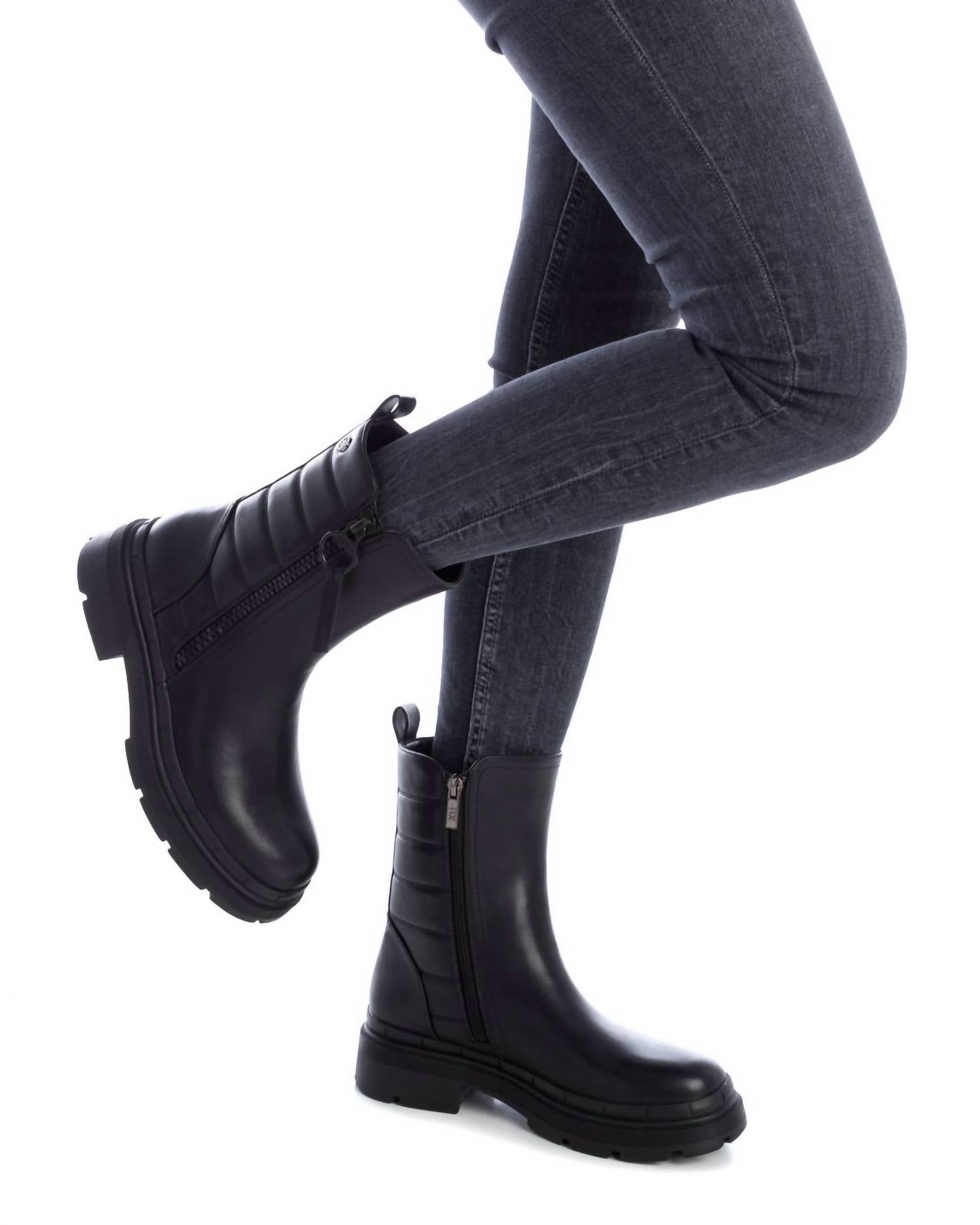 Добавьте изысканности в свой гардероб с женскими повседневными ботильонами Xti, изготовленными из дышащего и высококачественного нейлона для максимального комфорта. Эти ботильоны элегантного черного цвета с закругленным носком и застежкой-молнией сбоку обеспечивают удобство. Мягкая стелька и легкая нескользящая резиновая подошва обеспечивают комфорт в течение всего дня, а блочный каблук высотой около 2,5 см визуально увеличивает рост. Эти ботильоны идеально сочетаются с любым нарядом и идеально подходят женщинам, ценящим стиль и комфорт.