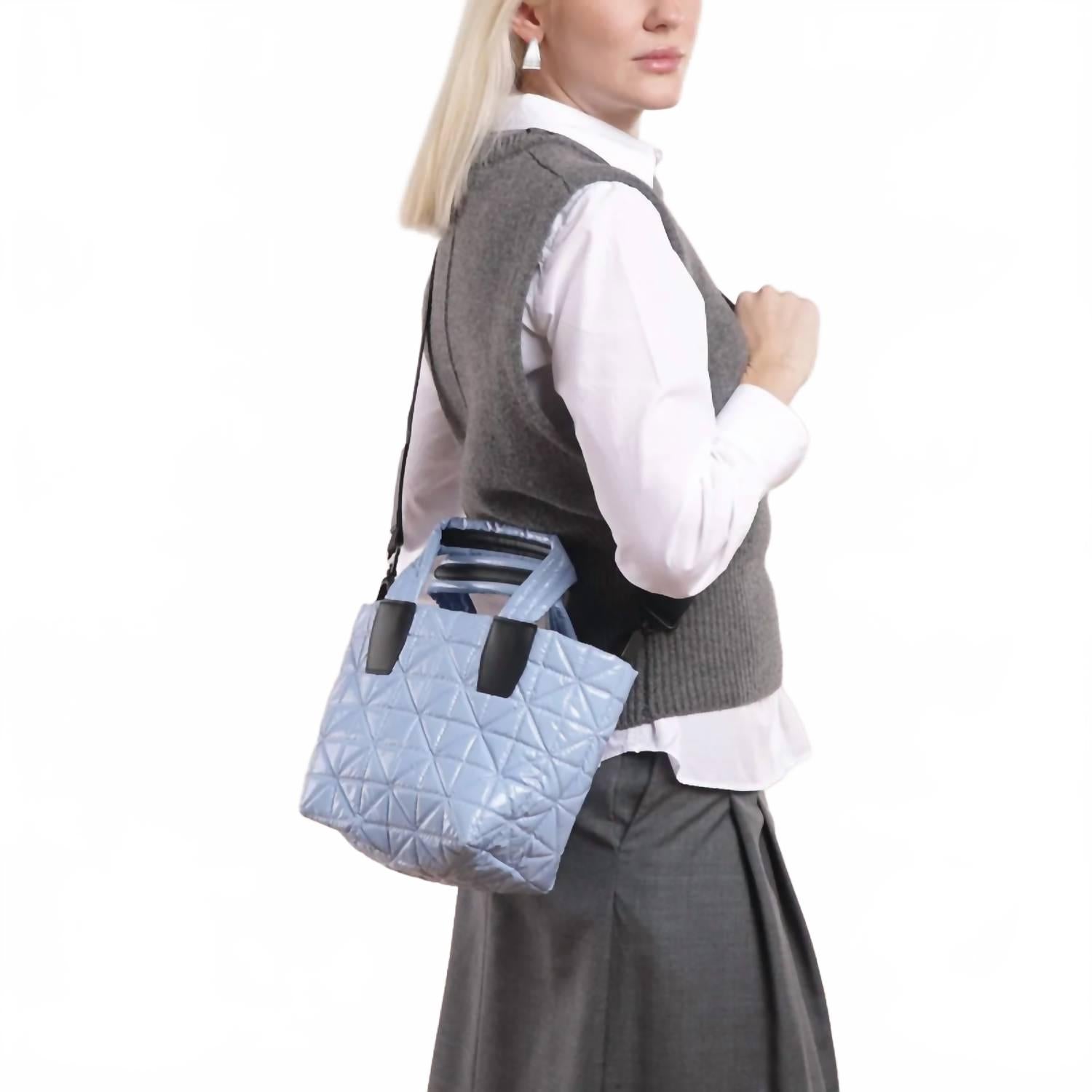 Идеальная сумка для ваших следующих выходных или пляжного отдыха! Ее классический дизайн никогда не выйдет из моды, и вы будете брать ее с собой сезон за сезоном. Встречайте мини-сумку-тоут от VEE Collective из яркого винила Cerulean, созданную для стиля и экологичности. Изготовленная из 100% переработанных и веганских материалов, она имеет корпус и подкладку из переработанного нейлона, дополняемые весом всего 0,5 фунта (260 г). Эта универсальная сумка предлагает достаточно места с внутренними отделениями, включая карман на молнии и сетчатый карман, и подходит для всех мобильных телефонов и небольших планшетов. Разработанная во Вьетнаме, сумка-тоут включает в себя пристегивающийся плечевой ремень и может похвастаться прочным, водо- и пятноустойчивым покрытием для длительного использования. Размеры: Д 9,5'' x Ш 6,3'' x В 7,8''.