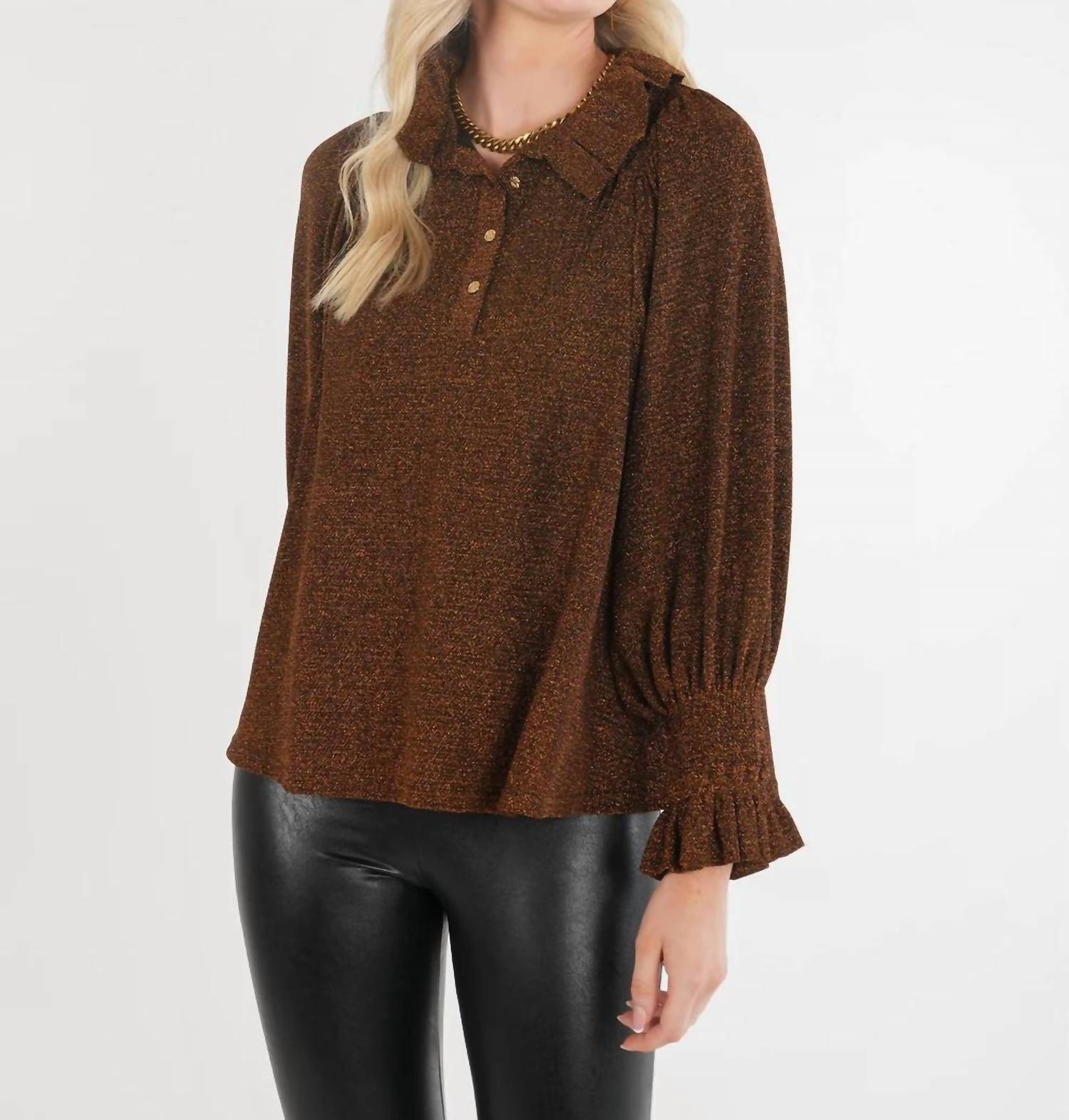 Длинный топ, который можно носить с джинсами, юбками, ну... практически с чем угодно! Топ Charlotte в цвете Black Gold - это лучшее из обоих миров, выступая в роли базового предмета одежды и эффектного элемента. Этот стиль женственный и кокетливый благодаря воротнику-стойке с оборкой, присборенным рукавам и изящным защипам. Черно-золотой металлический трикотаж создает легкий блеск, а драпированные рукава дополняют фирменную золотую фурнитуру. Сочетайте этот топ с расклешенными рукавами Ruffle Flares в цвете Black Ponte, чтобы создать стильный и сдержанный праздничный образ, который идеально подойдет для любой вечеринки или встречи Нового года! Детали: воротник-стойка с оборкой, фирменная застежка на золотые пуговицы, свободный рукав с присборенной отделкой, изящные защипы. Состав: 81% нейлон / 15% металлик / 4% спандекс, подкладка: 100% полиэстер.
