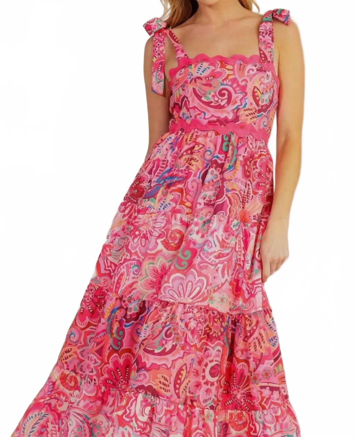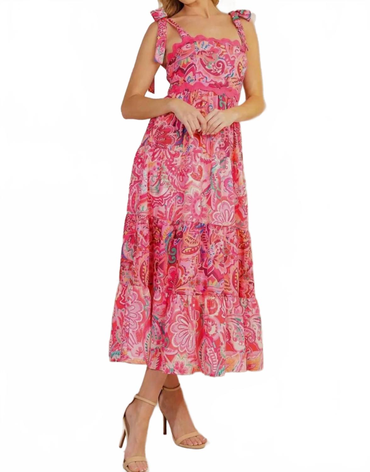 Просто добавьте шлепанцы или мюли, и все готово. Представляем платье Faith от FLYING TOMATO - очаровательное розовое платье с цветочным принтом, излучающее женственность и очарование. Это платье миди без рукавов изготовлено из 100% полиэстера. Квадратный вырез и изящные завязки на плечах придают ему романтичный вид. Многоярусная юбка добавляет объема, а лиф со сборками на спине выгодно подчеркивает фигуру. Длина платья составляет около 111 см. Благодаря удобной застежке-липучке это платье идеально подходит для любого случая. За ним легко ухаживать: машинная стирка и сушка в стиральной машине.