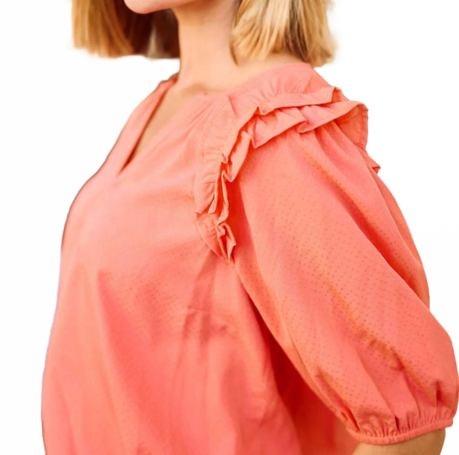 Универсальная блузка, которая подойдет как для работы, так и для ужина! Добавьте изысканности в свой весенний гардероб с помощью топа Skylar Top от Mary Square - потрясающей коралловой блузки, излучающей минималистичное очарование. Она отличается элегантными рукавами-буфами с эластичной отделкой и оборками на плечах. Блузка выполнена из 100% полиэстера. Стильный V-образный вырез подчеркивает ее женственность, делая ее идеальным выбором для отпуска или празднования Дня благодарения. Для удобства ее можно стирать в стиральной машине и сушить на веревке.