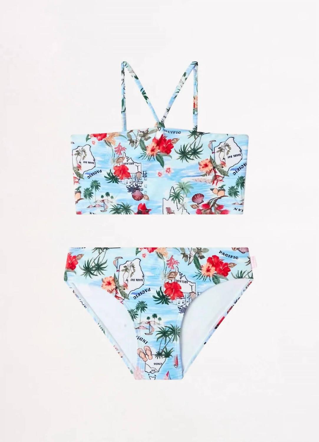 Приготовьтесь к стильному пляжному дню в комплекте из трех предметов для летнего отдыха Seafolly Girls Summer Vacay ярко-синего цвета, идеально отражающем моду 90-х. Этот комплект бикини с узором дополнен регулируемыми бретельками-руло для индивидуальной посадки и включает в себя базовые плавки для комфорта. Дополните образ мини-саронгом из хлопковой вуали, чтобы придать ему изюминку. Этот комплект из 100% полиэстера лучше всего стирать вручную и сушить на веревке, что делает его идеальным вариантом для Пасхи и любого летнего торжества.