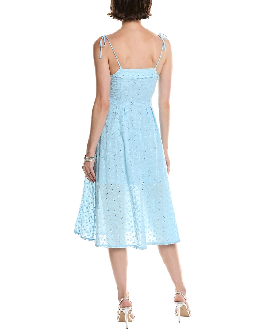 Представляем платье миди Abbey Eyelet - великолепное дополнение к вашему гардеробу. Это великолепное платье великолепного синего цвета с завязками на плечах и плиссированной юбкой. Застежка на пуговицы спереди добавляет элегантности, а ткань из 100% полиэстера обеспечивает комфорт и стиль. Это платье идеально подходит для любого случая. Длина платья от плеча до подола составляет около 111 см. На модели ростом 175 см, размер S. Дополните свой образ платьем миди Abbey Eyelet, импортным и пригодным для машинной стирки.