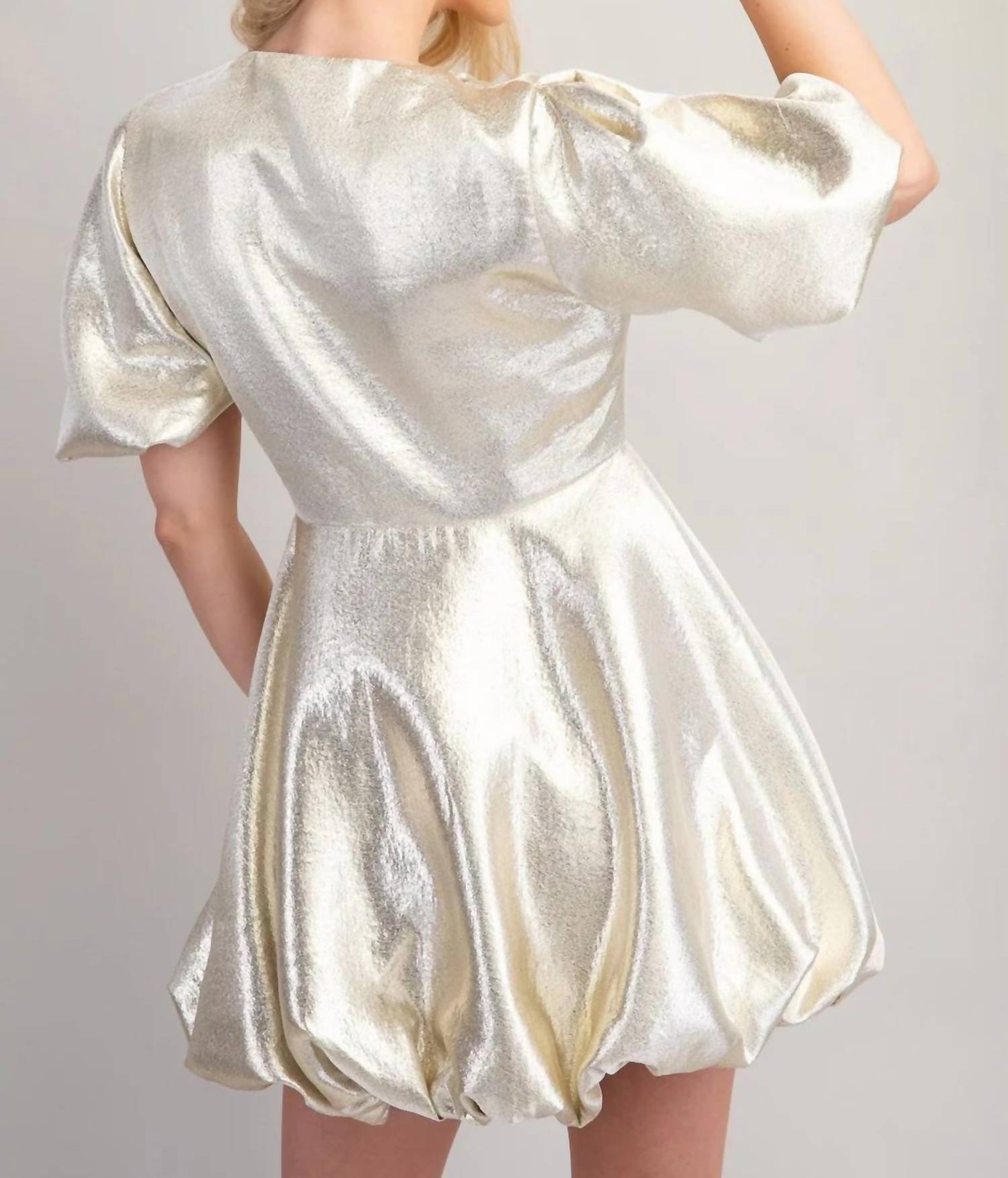 Элегантное мини-платье А-силуэта кремового оттенка. Изготовлено из 100% полиэстера. Обеспечивает роскошную и комфортную посадку. V-образный вырез и короткие рукава-буфы. Изысканная элегантность. Надевается без застежки. Ручная стирка для сохранения великолепного внешнего вида.