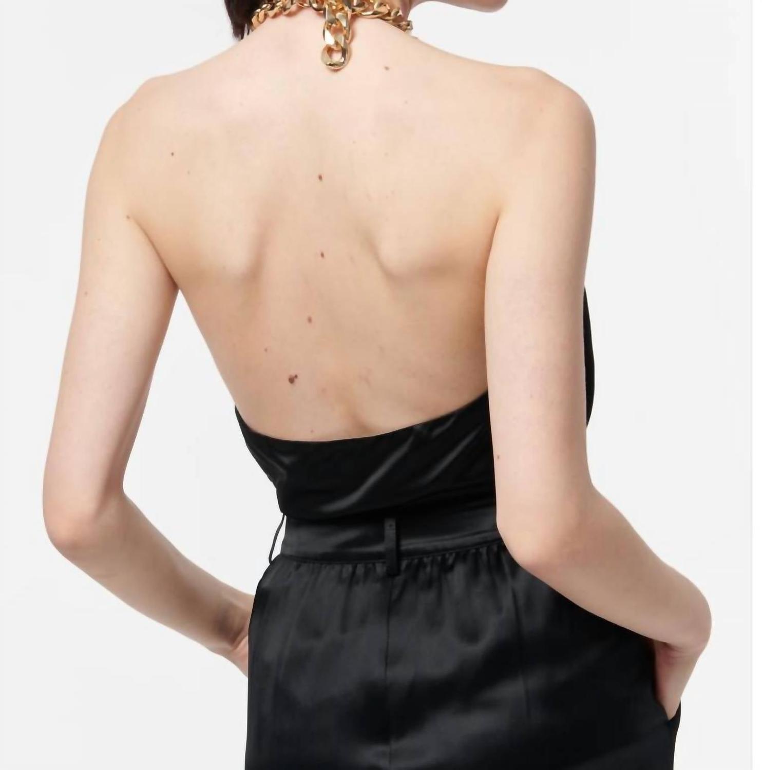 Топ Kenley - это топ-топ с бретелькой через шею, с толстой золотой цепочкой на горловине и застежкой-кольцом. Модель Kenley имеет драпированный вырез, имитирующий перекрученный, и разрез по центру спереди. Топ полностью на подкладке. Станьте центром внимания на своем следующем мероприятии в этом топе. Состав: полиацетат; 73% ацетат, 27% полиэстер. Только сухая чистка и отпаривание. Импортный товар. Размер соответствует заявленному.
