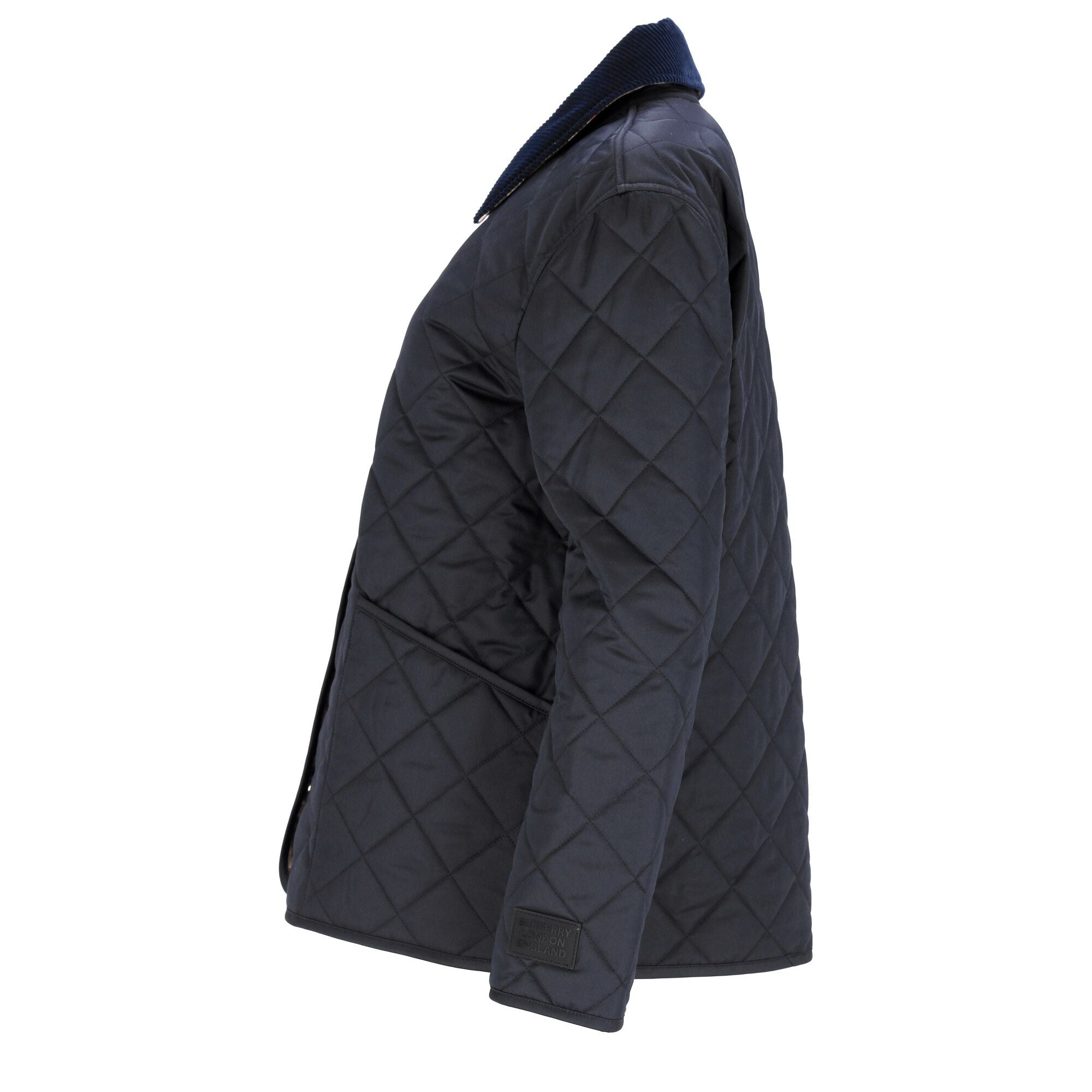 Синие стеганые куртки. Характеристики: - Воротник рубашки - классическая ромбовидная стежка - вельветовый воротник - планка на кнопках - два передних кармана - аппликация логотипа на рукаве - застежка на кнопки. Материал верха - 100% полиэстер. Отделка - 100% хлопок. Подкладка - 100% хлопок. Наполнитель - 100% полиэстер. Застежка на кнопках. Накладные карманы. Фирменная деталь - клетчатый воротник. Силиконовая нашивка с рельефной надписью Burberry на рукаве. Страна происхождения - Китай.