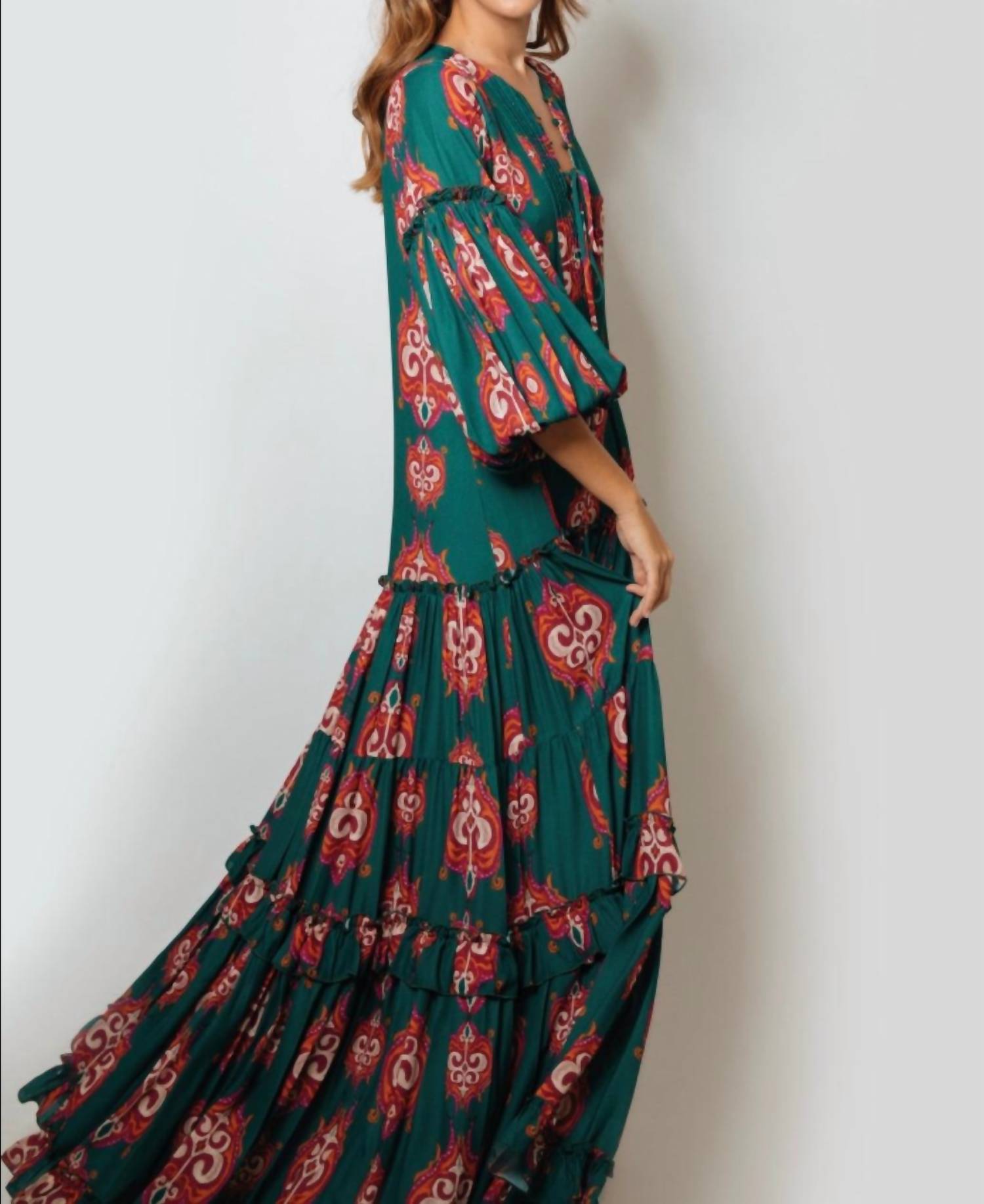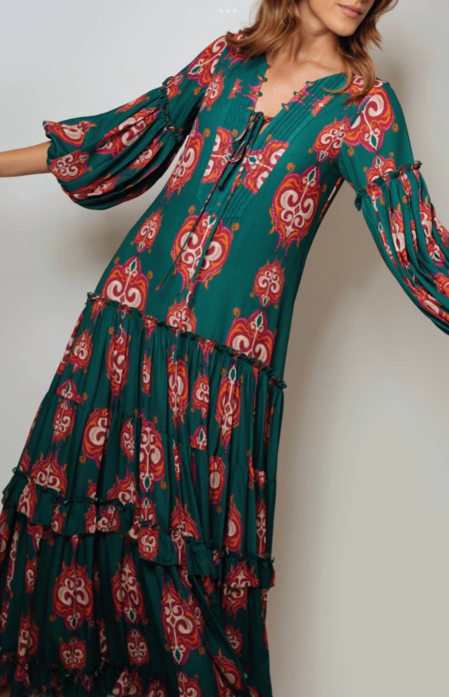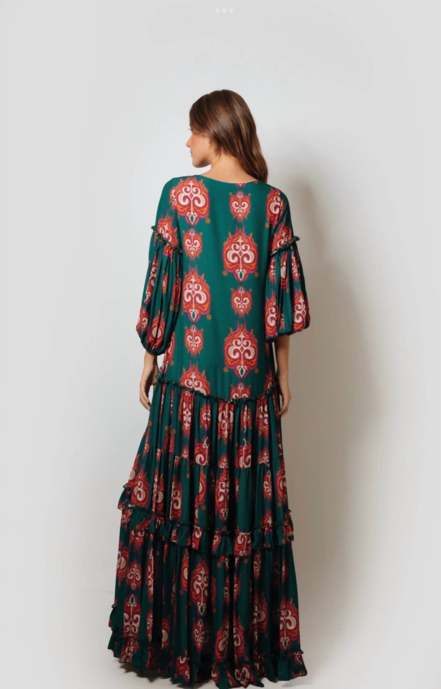 Это узорчатое платье с струящимся силуэтом, рукавами три четверти и V-образным вырезом, подчеркивающим фигуру, идеально подходит для создания непринужденной элегантности. Платье изготовлено из 100% современного полиэстера с роскошной подкладкой из вискозы и оснащено удобной завязкой для надежной посадки.