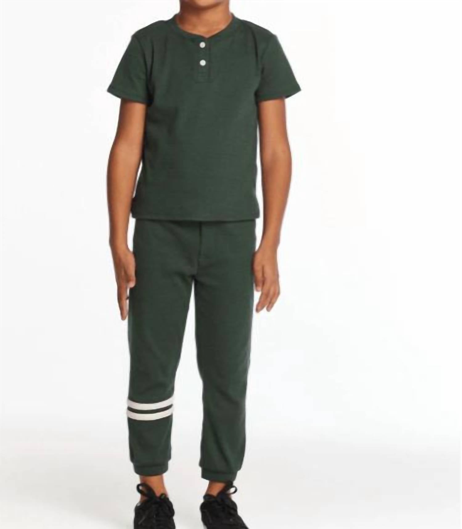 Представляем полосатые брюки Chaser Striped Lounge Pants цвета сафари, созданные для комфорта и стиля. Эти брюки для мальчиков отличаются удобным кроем и двумя белыми полосками по штанине, которые придают им нотку винтажности. Их можно сочетать с подходящей кофтой с короткими рукавами, чтобы создать законченный образ. Изготовленные из смеси 49% полиэстера, 46% вискозы и 5% спандекса, они идеально подойдут для весенних приключений. Инструкция по уходу включает машинную стирку для легкого ухода. На модели размер 6T.