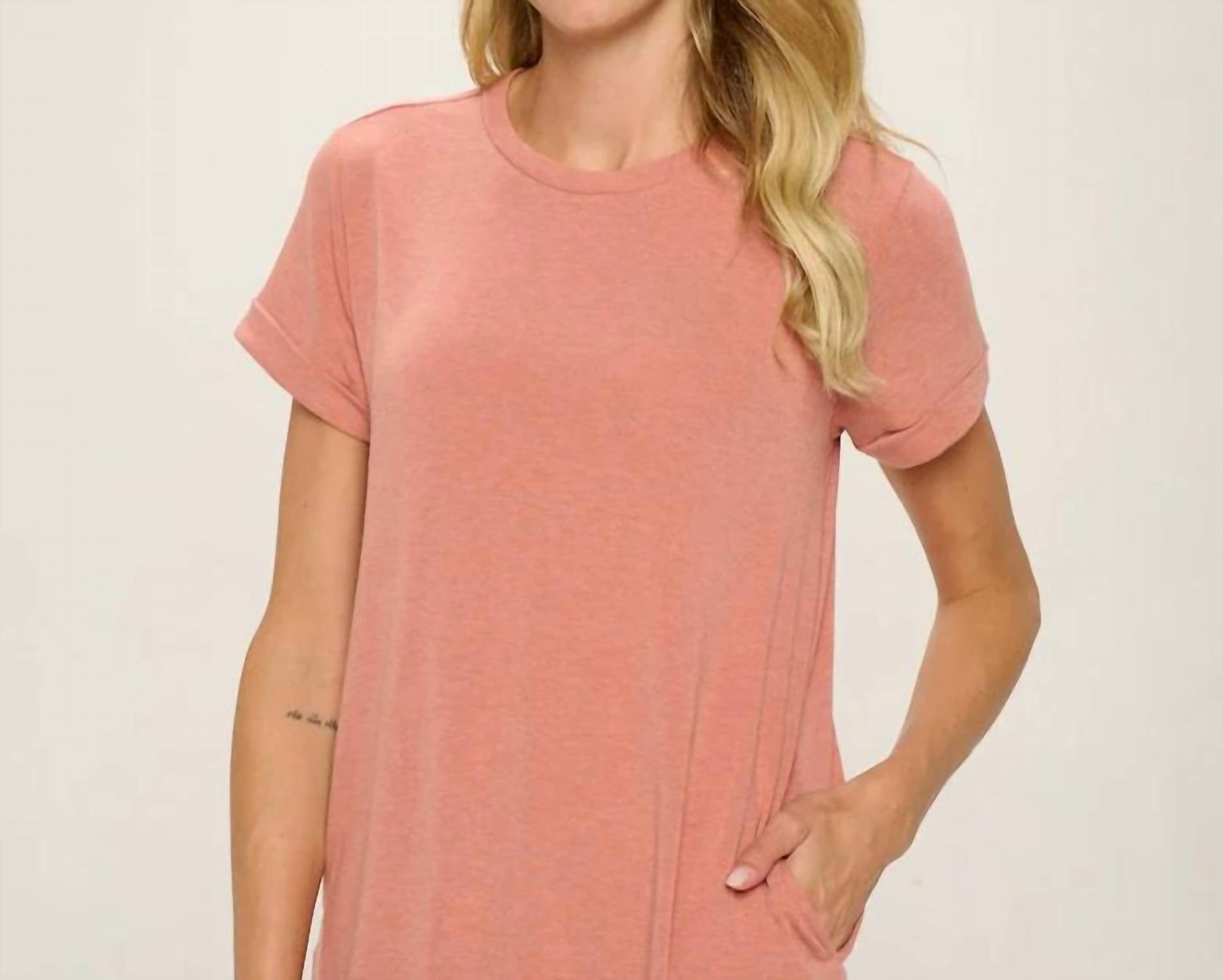 Платье свободного кроя с круглым вырезом и короткими рукавами-манжетами дополнено удобными карманами для дополнительной функциональности. Это платье из мягкой смеси 63% полиэстера, 34% вискозы и 3% спандекса идеально подходит для любого случая. Обхват груди от 40 до 44 дюймов (100-110 см), длина от 34 до 36 дюймов (88-91 см) для удобства выбора размера.
