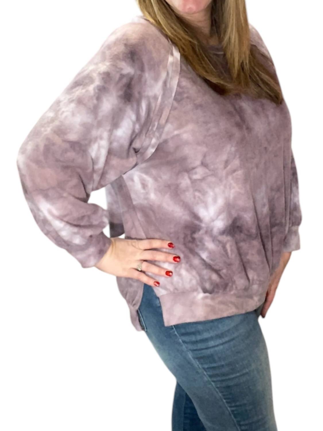 Круглый вырез горловины. Окраска в технике тай-дай. Фасон пуловера. Разрезы по бокам. Длинные рукава. Размер в размер. Состав: 78% полиэстер, 18% вискоза, 4% спандекс. Машинная стирка в холодной воде.