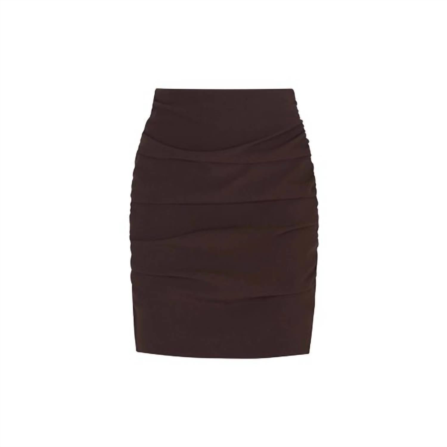 Подчеркните красоту ног в этом облегающем мини-платье. Дополните свой гардероб изысканной мини-юбкой с драпировкой от Nocturne насыщенного коричневого цвета. Эта юбка с высокой талией, драпировкой и потайной молнией в боковом шве обеспечивает элегантный силуэт. Изготовленная из смеси 72% полиэстера, 22% вискозы и 6% эластана, эта модель сочетает в себе стиль и комфорт. Обратите внимание: юбка маломерит.