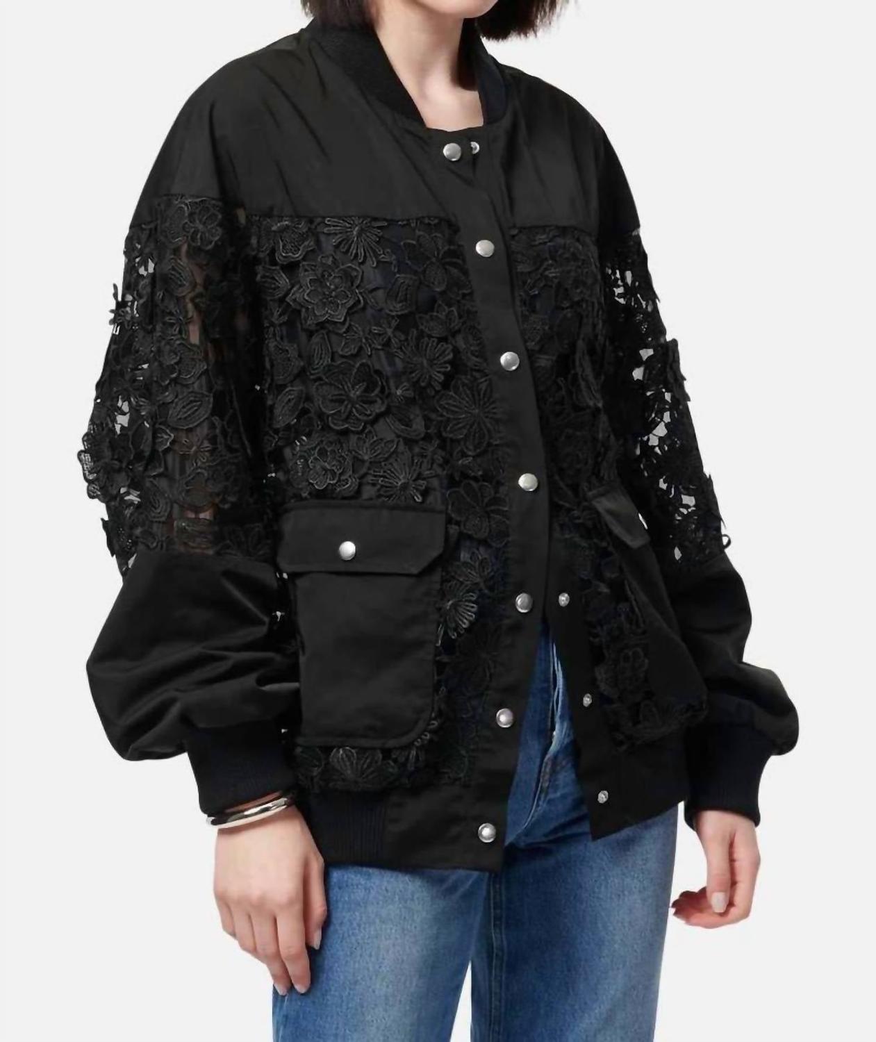 Встречайте куртку Ramsey от Cami NYC - яркий элемент вашего дорожного гардероба в элегантном стиле преппи. Эта свободная куртка-бомбер классического черного цвета с длинными рукавами и эффектным фактурным узором дополнена прозрачными 3D-кружевными вставками, которые придают ей стильный вид. Изготовленная из прочного 100% полиэстера и полностью на подкладке для комфорта, куртка дополнена ребристыми вставками на воротнике, манжетах и подоле, а также надежной застежкой на кнопку. Чтобы сохранить этот эффектный предмет гардероба, отдайте его в химчистку.
