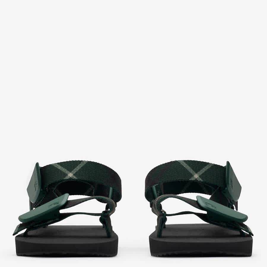 Мужские сандалии Burberry. Цвет: Jungle Ip Check. Сандалии Trek в клетку Burberry. Пара сандалий Trek с клетчатым узором, регулируемыми боковыми ремешками и фирменным мотивом Equestrian Knight. Модель с круглым носком и логотипом на подошве, придающим модели особый шарм. Верх: 100% полиэстер, отделка: 80% полиамид, 20% латунь, подкладка: 70% ЭВА, 29% полиэстер, 1% овечья кожа, подошва: 100% термопластичный полиуретан. Сделано в Италии.
