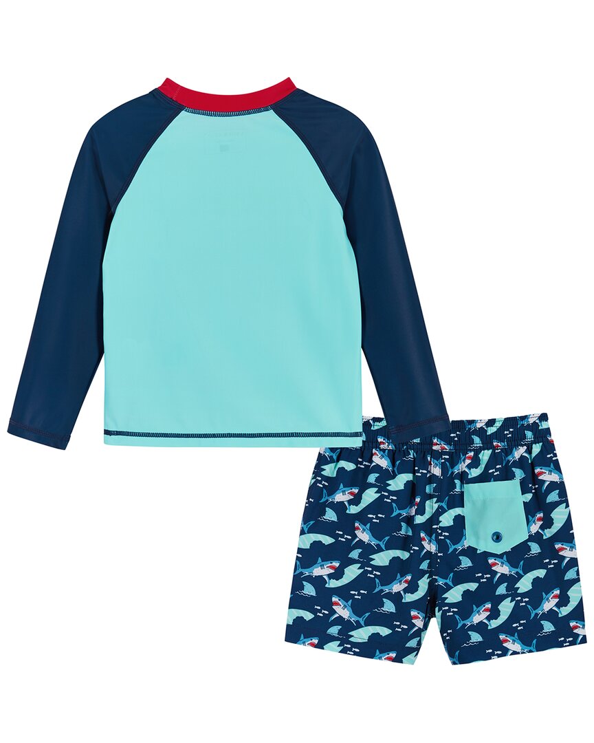 Представляем комплект рашгарда Andy ; Evan в цвете «Темно-синяя акула» для мальчиков! Этот веселый и смелый комплект купальника с ярким принтом акулы выделит вашего ребенка на пляже или в бассейне. Рукава реглан обеспечивают дополнительный комфорт и свободу движений в течение всего дня, а ткань с защитой от солнца UPF 50+, рекомендованная Фондом борьбы с раком кожи, защищает вашего ребенка от вредного воздействия солнечных лучей. В комплект входят шорты с завязками на талии из 95% полиэстера и 5% спандекса, а также рубашка из 85% полиэстера и 15% спандекса с контрастными деталями из 100% полиэстера. Этот комплект рашгарда импортного производства можно стирать в стиральной машине, он станет идеальным дополнением к летнему гардеробу вашего малыша.