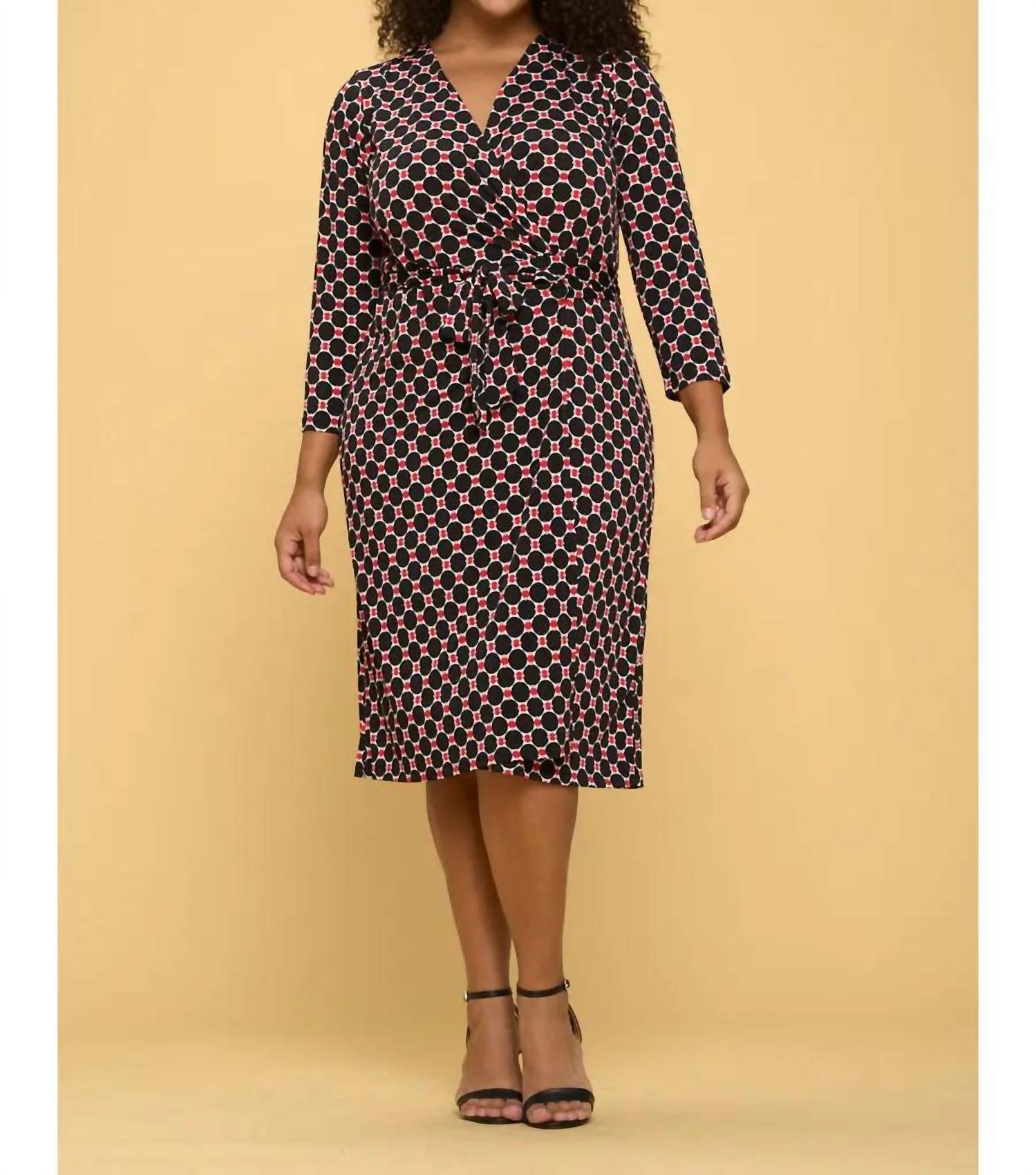 Представляем платье-халат Curvy Wrap Dress Safira от ReneeC. - шикарное платье миди универсального черного цвета с игривым узором в горошек. Это эффектное изделие отличается изысканным силуэтом-футляром, V-образным вырезом и рукавами три четверти. Изготовлено в США из мягкой и эластичной смеси 95% полиэстера и 5% спандекса, что обеспечивает комфорт и идеальную посадку. Застежка: завязка. Уход: ручная стирка в холодной воде, сушка на веревке.