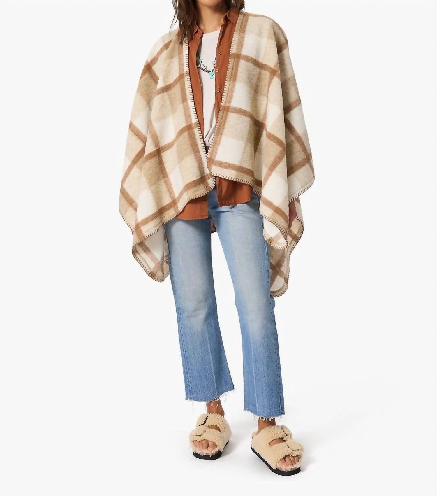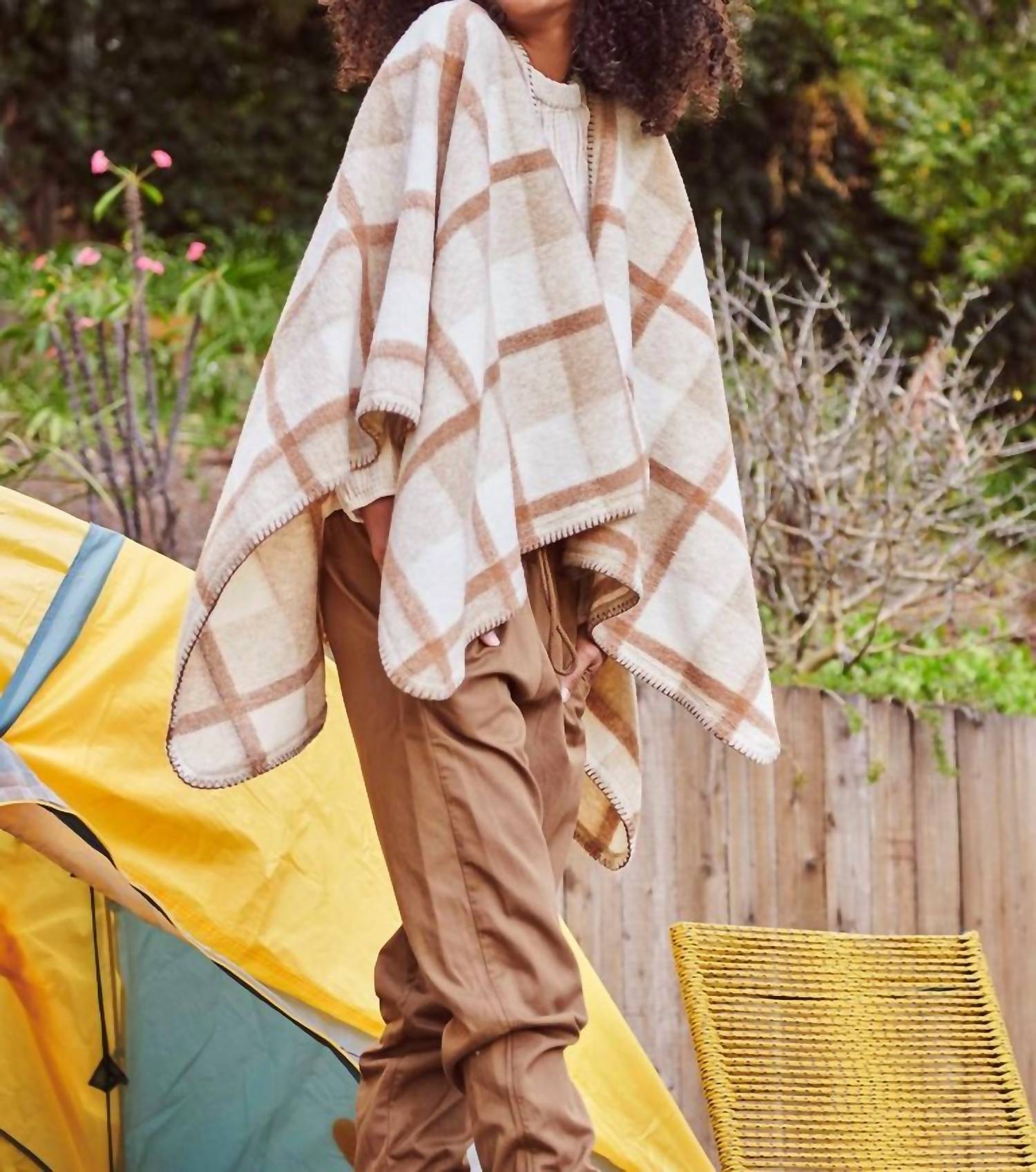 100% полиэстер. Идеальное дополнение к вашему любимому одеялу и новому любимому пончо. Эта шаль в винтажном стиле - словно одеяло, которым вы закутались и отправились гулять. Клетчатый принт идеально подходит к этому наряду. Размер соответствует заявленному. Только химчистка. Рост модели 175 см, размер XS/S.