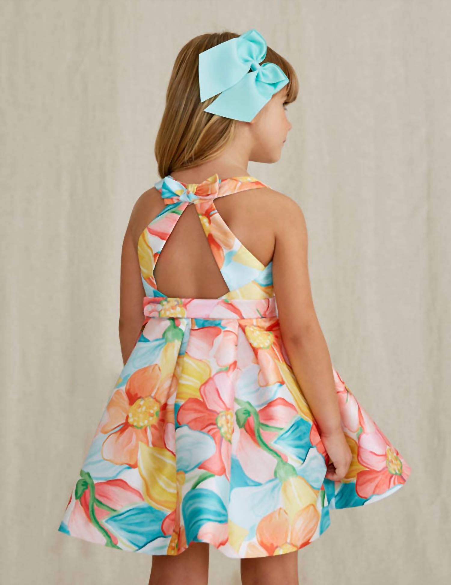Украсьте гардероб вашей малышки платьем с цветочным принтом «Микадо» от Abel ; Lula - великолепным украшением для любого случая. Это синее платье, выполненное из 100% полиэстера и подкладки (85% хлопка, 15% полиэстера), имеет плиссированную юбку и нежный цветочный узор. Платье имеет отрезную талию, пояс и красивый бант. Застегивается сзади на одну пуговицу и потайную молнию. Это платье идеально подходит для повседневных случаев и создает элегантный и игривый образ для девочек.