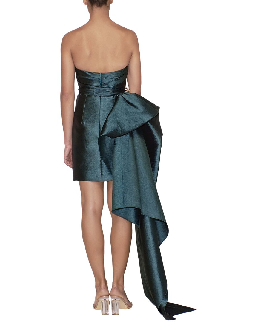 Представляем потрясающее мини-платье без бретелек Reem Acra из смесового шелка насыщенного лесного зеленого оттенка. Это изысканное изделие дополнено съемной баской, что делает его еще более универсальным и стильным. Изготовленное из роскошной смеси 89% полиэстера и 11% шелка, это платье станет ярким акцентом на любом мероприятии. Платье, изготовленное в США, требует только химчистки для сохранения его безупречного качества. Дополните свой гардероб этой незаменимой вещью от Reem Acra.
