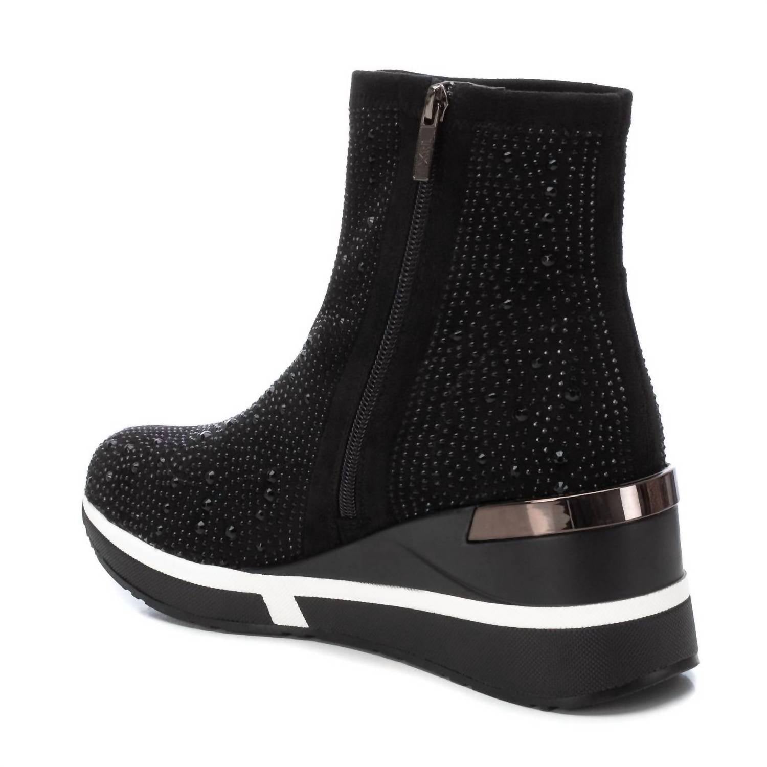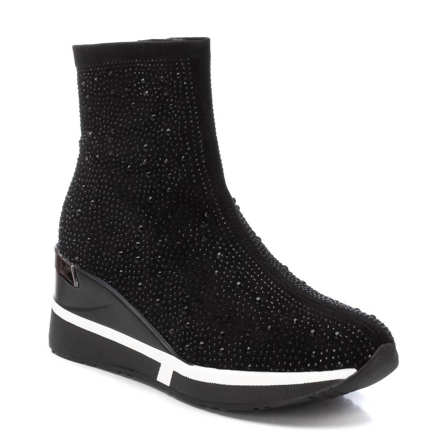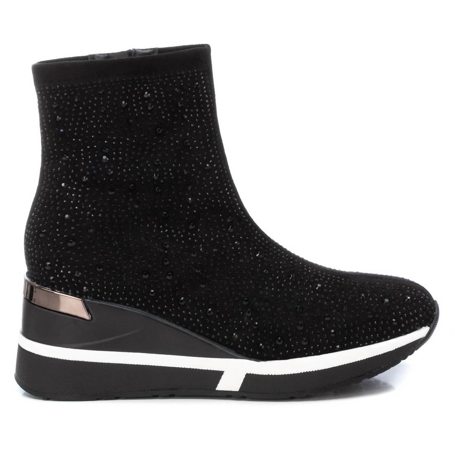 Дополните свою коллекцию обуви женскими спортивными ботильонами на танкетке от Xti, которые сочетают в себе повседневный стиль и комфорт в элегантном черном цвете. Эти ботильоны с дышащим тканевым верхом, украшенным декоративными стразами, и удобной застежкой-молнией сбоку. Клиновидный каблук высотой 4 см в сочетании с легкой и прочной нескользящей резиновой подошвой и мягкой стелькой обеспечивают комфорт и поддержку в течение всего дня. Изготовленные из высококачественных материалов, эти ботильоны воплощают идеальное сочетание моды и функциональности.
