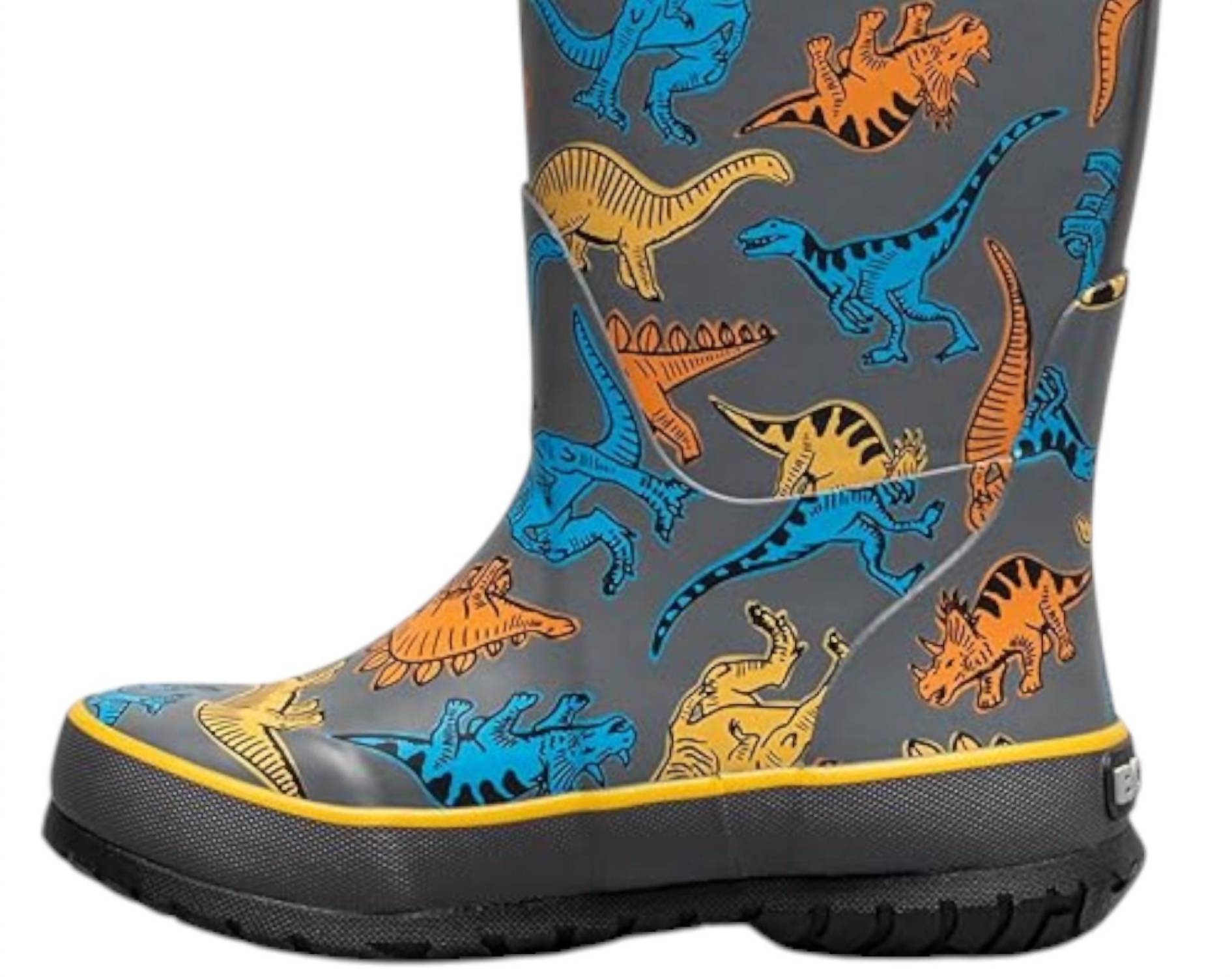 Детские динозавровые дождевые сапоги в сером цвете Bogs, серый