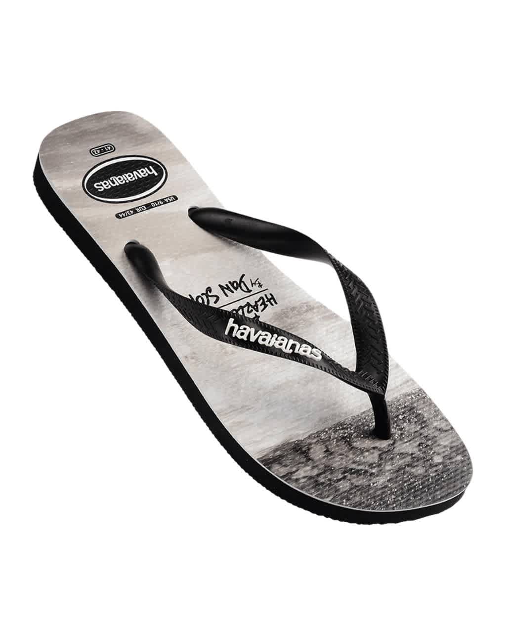 Мужские сандалии Havaianas. Цвет: черный/белый. Шлепанцы Havaianas Top с фотопринтом. Эти шлепанцы имеют открытый носок, свободную посадку, ремешки Havaianas Top с резиновым логотипом, фирменную текстурированную стельку с фотопринтом и изготовлены из гибкой бразильской резины премиум-класса. Сделано в Бразилии.