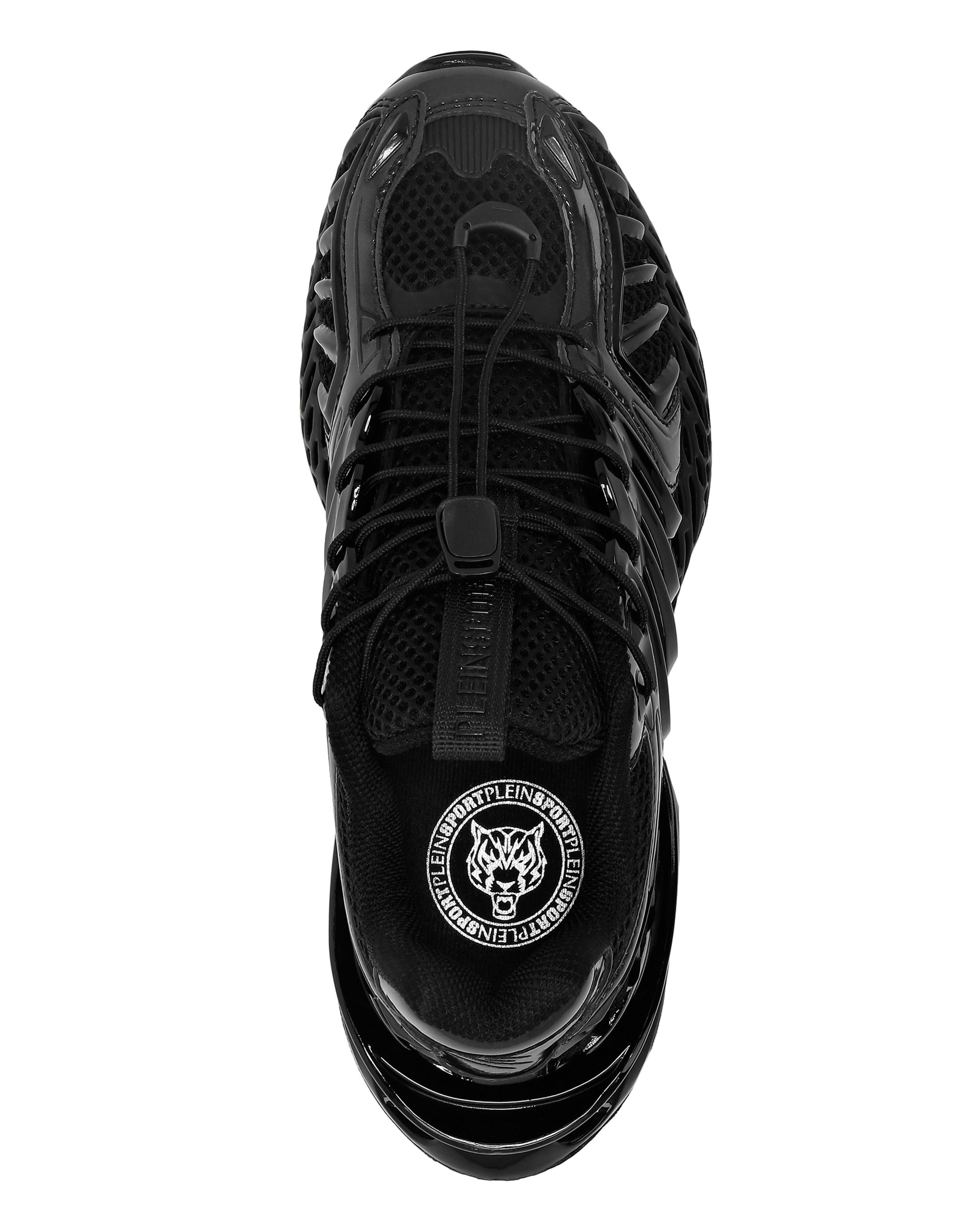 Кроссовки Thunder Stroke Gen X 02 являются результатом творческой работы лаборатории Plein Sport Lab, целью которой является объединение передовых технологий и уникального, выдающегося дизайна. ● Динамичный, усиленный верх из мягкой сетки с оболочкой из лакированной и искусственной кожи, поддерживающей люверсы и плотно облегающей стопу. ● Эластичные трубчатые шнурки со стопорным шнурком. ● 3D-принт с изображением знаменитого тигра из резины нанесен на язычок и вставку на подошву. ● Прорезиненная, эргономичная, амортизирующая, сверхлегкая, высокотехнологичная перфорированная промежуточная подошва с инновационными металлическими деталями с покрытием ● Подошва имеет форму, обеспечивающую оптимальное сцепление ● Внутренняя подкладка