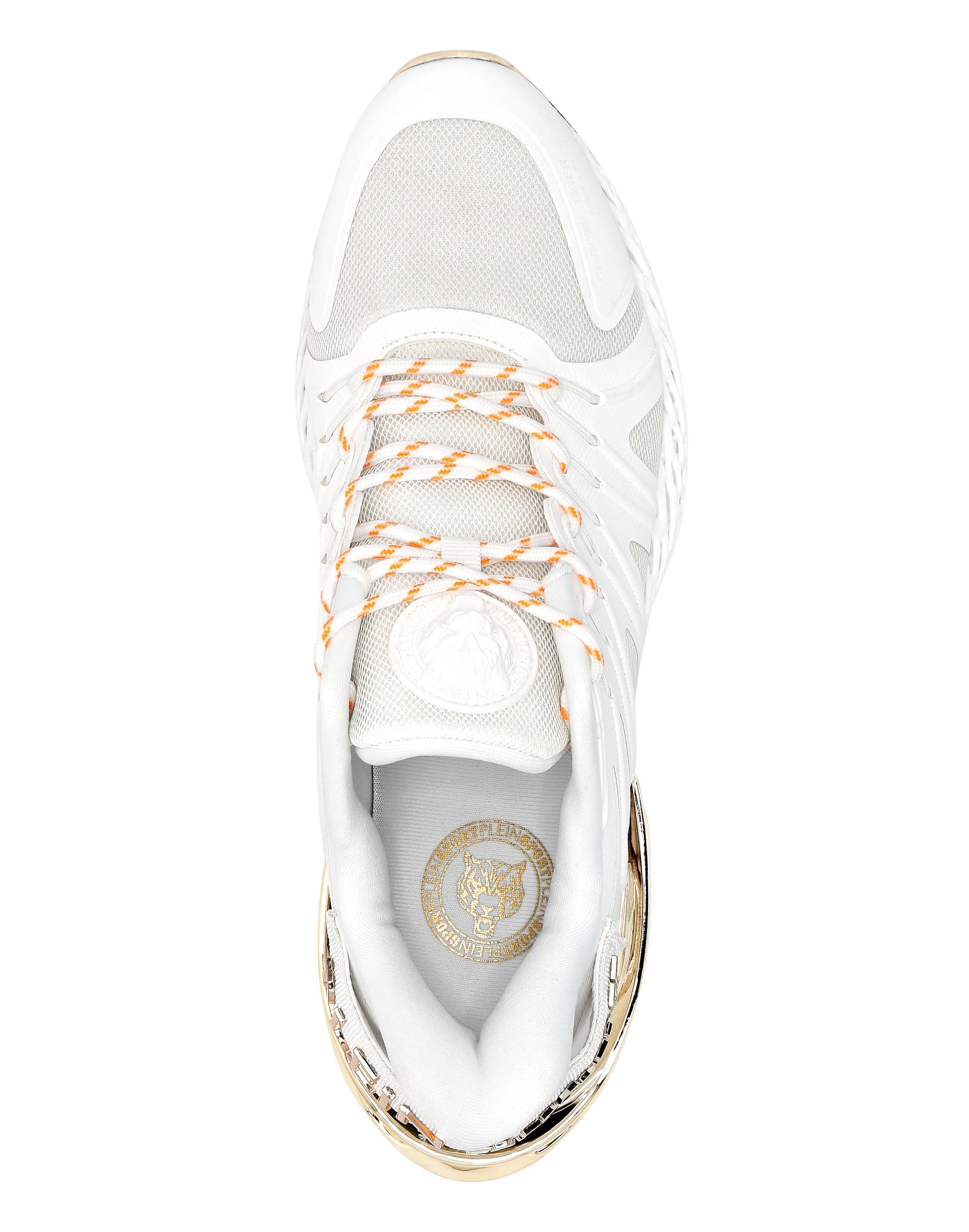 Кроссовки Chrome Tiger Gen X 02 являются детищем лаборатории Plein Sport Lab, целью которой является объединение передовых технологий и уникального, выдающегося дизайна. ● Динамичный, усиленный верх из сетки с прорезиненной оболочкой, поддерживающей люверсы и плотно облегающей стопу ● Двухцветные трубчатые шнурки ● 3D-принт с изображением знаменитого тигра из резины нанесен на язычок и вставку на подошву. ● Plein Sport на каблуке ● Прорезиненная, эргономичная, амортизирующая, сверхлегкая, высокотехнологичная перфорированная промежуточная подошва с инновационными металлическими деталями с покрытием ● Подошва имеет форму, обеспечивающую оптимальное сцепление ● Внутренняя подкладка