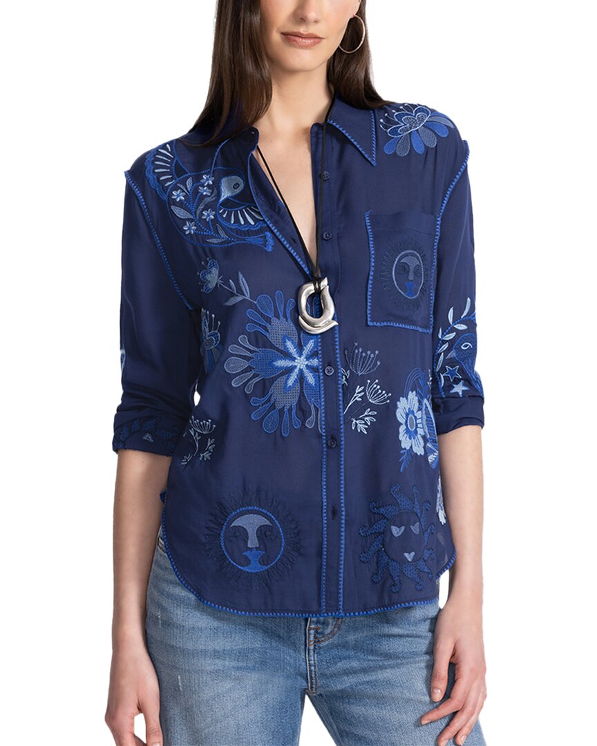 Джонни Вас Расслабленная рубашка с карманом Johnny Was, синий
