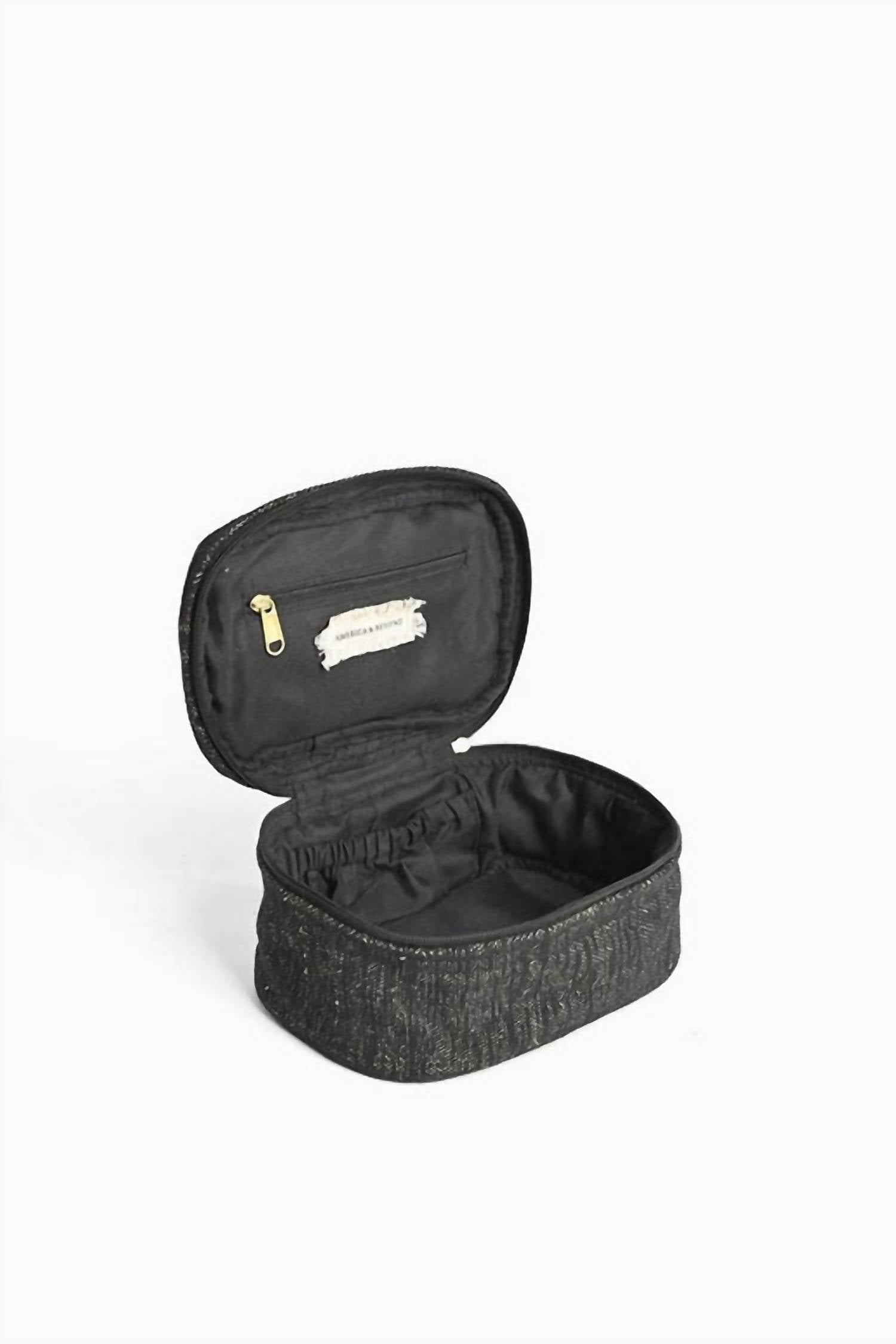 Прочная ручка сверху. Застежка-молния. Вместительный дизайн. Детали с пчелами, вышитые вручную. Люрекс придает металлический блеск. Полностью на подкладке, с внутренним карманом. Размер: 9,5 x 5 x 6 дюймов.