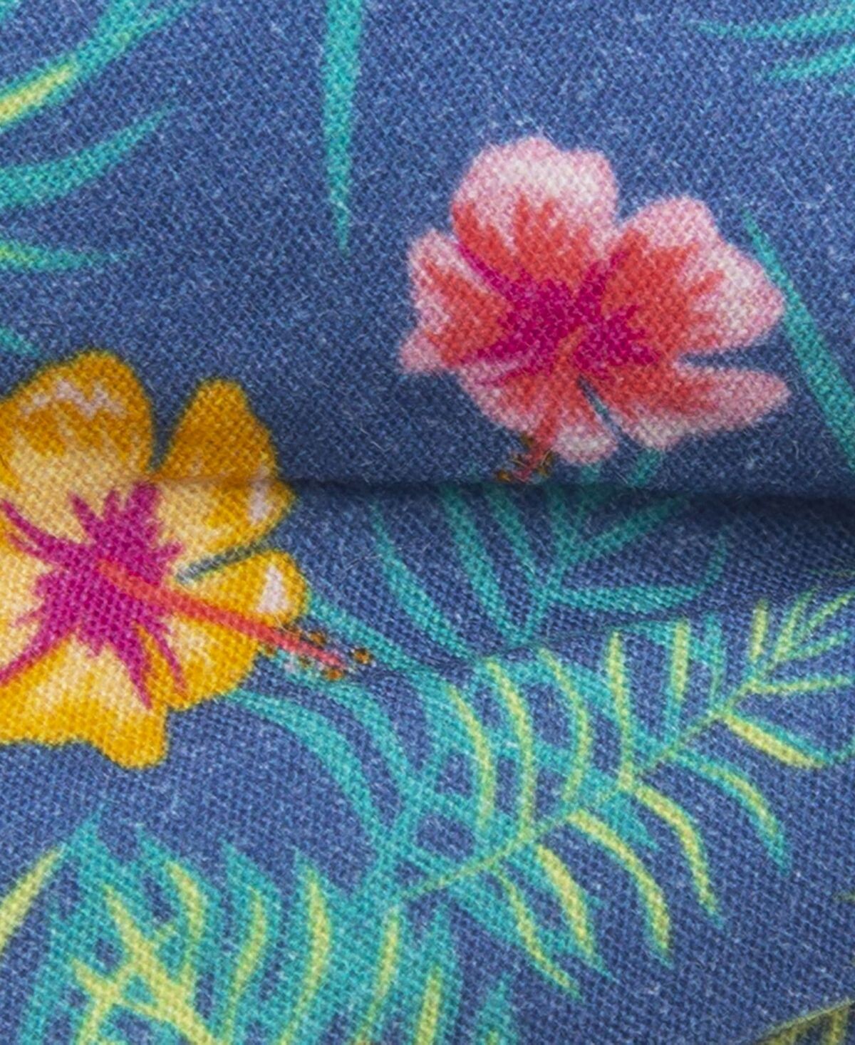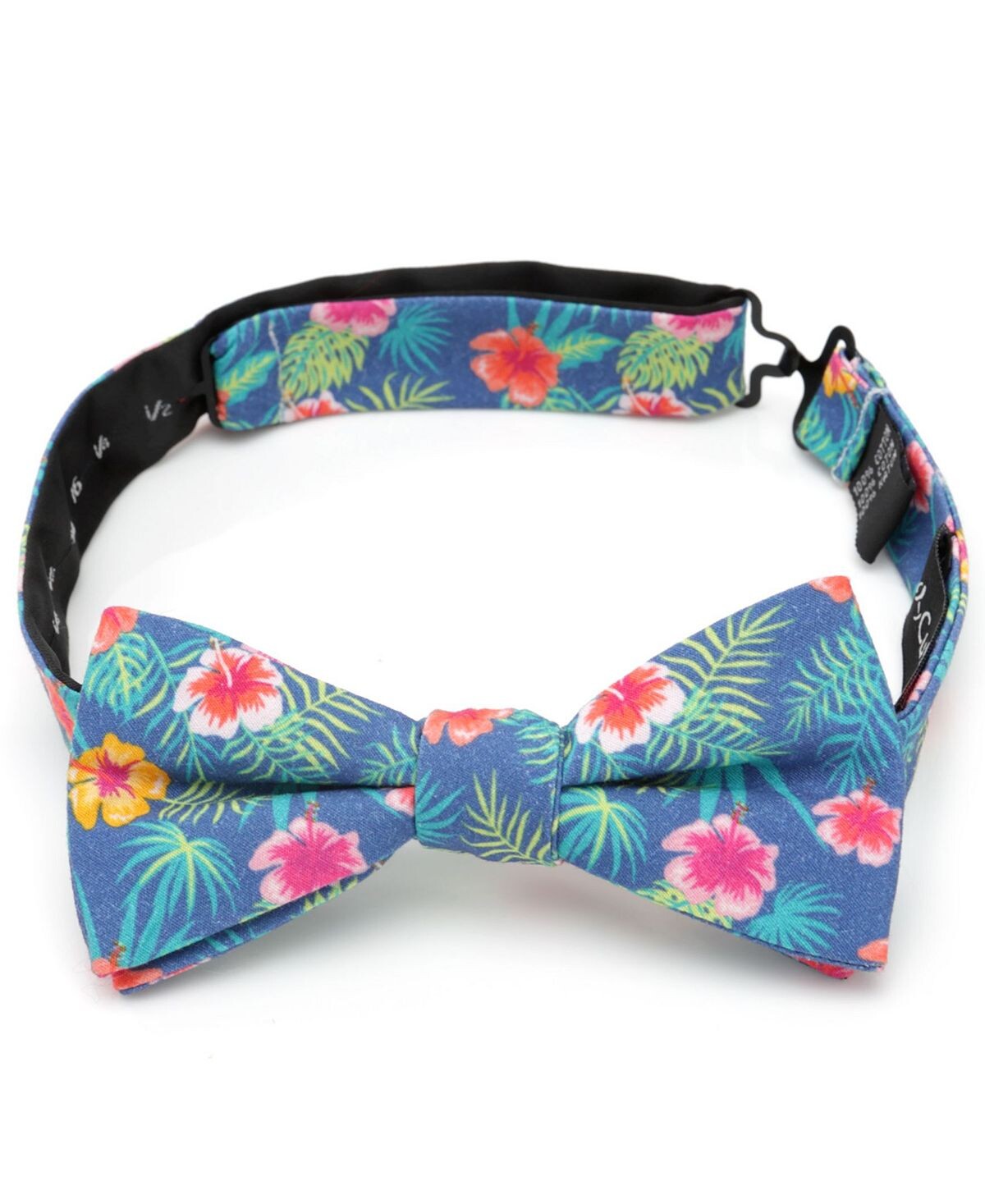 На каждом галстуке-бабочке изображены тропические цветы гибискуса и развевающиеся пальмовые листья на фоне прохладного морского синего цвета. Полностью регулируется, подходит для большинства размеров шеи.