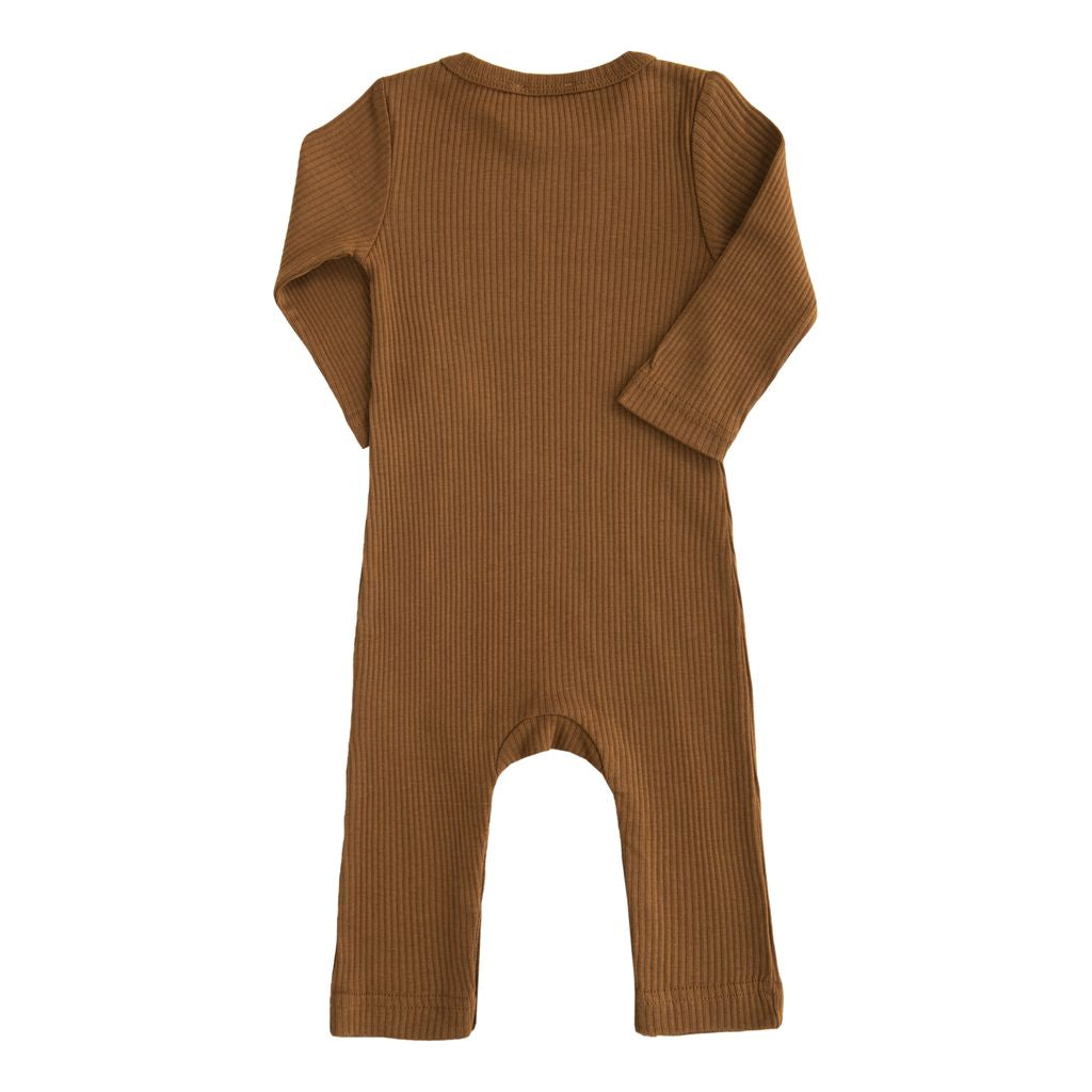 Коричневый комбинезон из модала с длинными рукавами для малышей от BANBLU, нейтральный по половому признаку, из мягкой и удобной смеси хлопка и модала, с круглой горловиной, длинными рукавами и штанинами с застежкой на пуговицы.