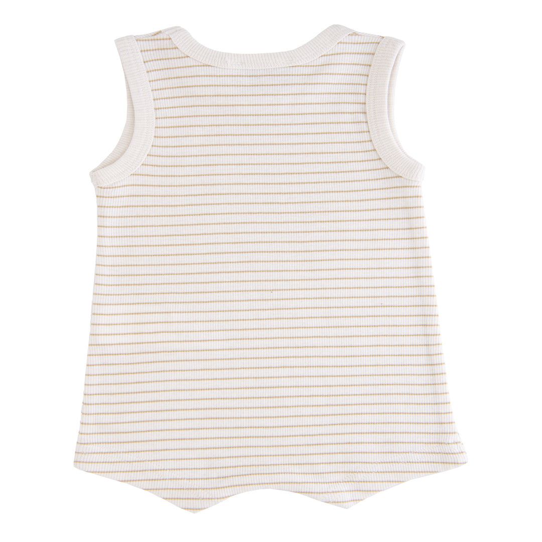 Бежевый полосатый комбинезон без рукавов из модала для младенцев от BANBLU, нейтральный по половому признаку, из мягкой и удобной смеси хлопка и модала, с круглым вырезом, без рукавов, с застежкой на пуговицы ниже.