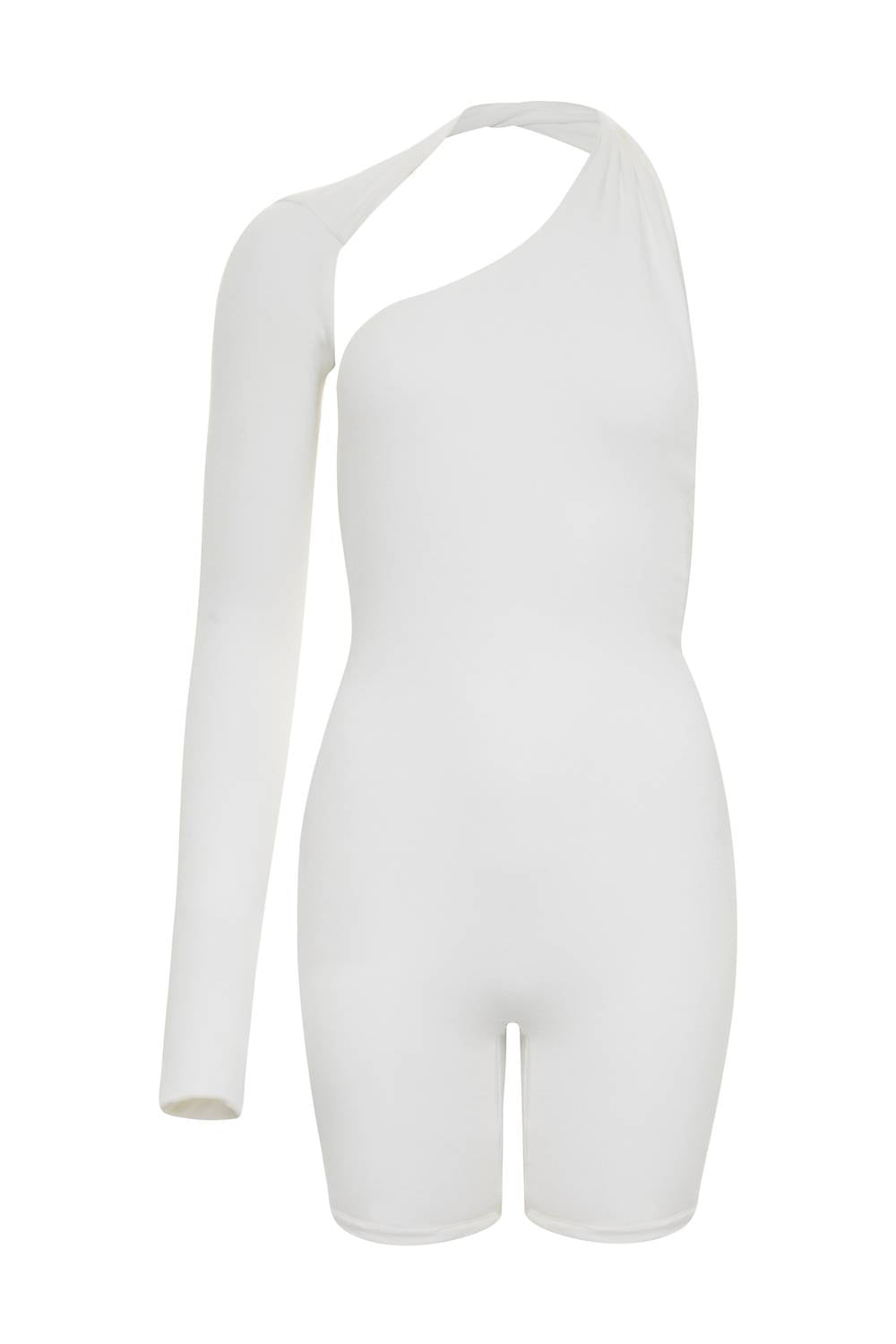 Яркая и вневременная модель. Элегантный комбинезон с удлиненными рукавами и эффектным дизайном на одно плечо. С обворожительным силуэтом и глубоким вырезом на спине. Изготовлен из комфортной смеси 45% хлопка, 50% модала и 5% спандекса. Двойная подкладка для повышения качества и стиля. Застежка на застежке. Обеспечивает удобство и универсальность. Для сохранения роскошного вида рекомендуется сдавать в химчистку.