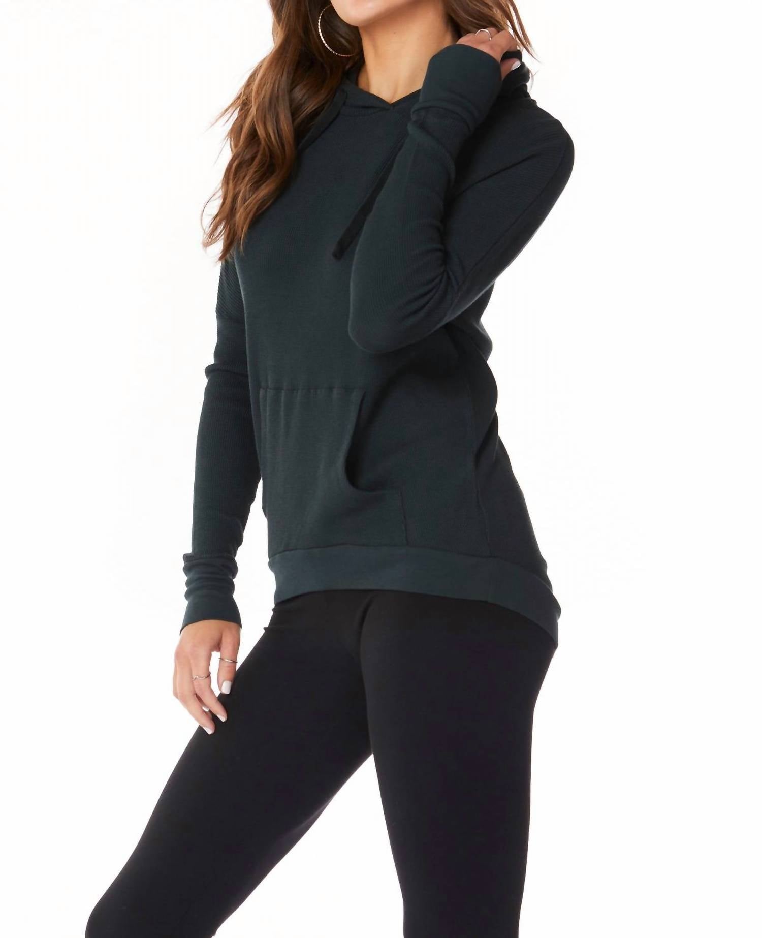 Самая уютная вещь сезона. Толстовка с карманом из термобелья из модала, невероятно мягкая и удобная. Стильное обновление классической худи. Состав: 56% хлопок, 40% модал, 4% спандекс. Длина изделия: 27 дюймов. На модели размер Small.