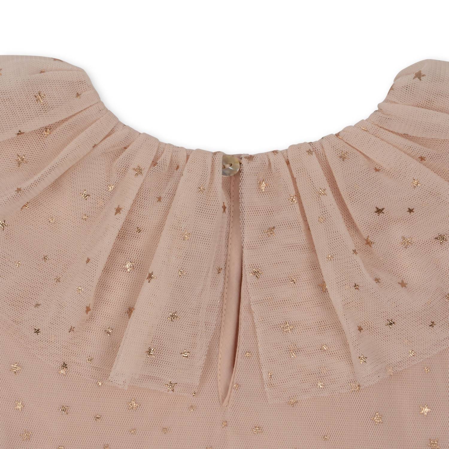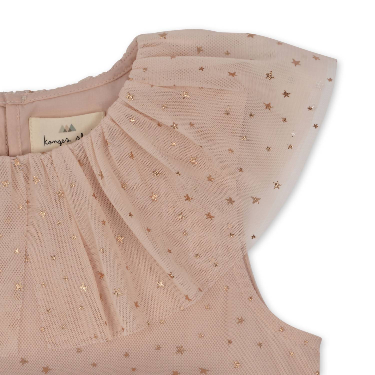 Откройте для себя детское платье «Сказка» от Konges Sløjd - восхитительное изделие, идеально подходящее для игр и особых случаев, таких как день рождения или День благодарения. Это платье очаровательного нежно-розового оттенка с оборками, причудливой юбкой из тюля и большим круглым воротником, застегивающимся на одну перламутровую пуговицу сзади. Изготовлено из тщательно подобранных материалов, способных выдержать детские шалости. Уход: машинная стирка для легкого ухода. Сделано с любовью в Копенгагене.