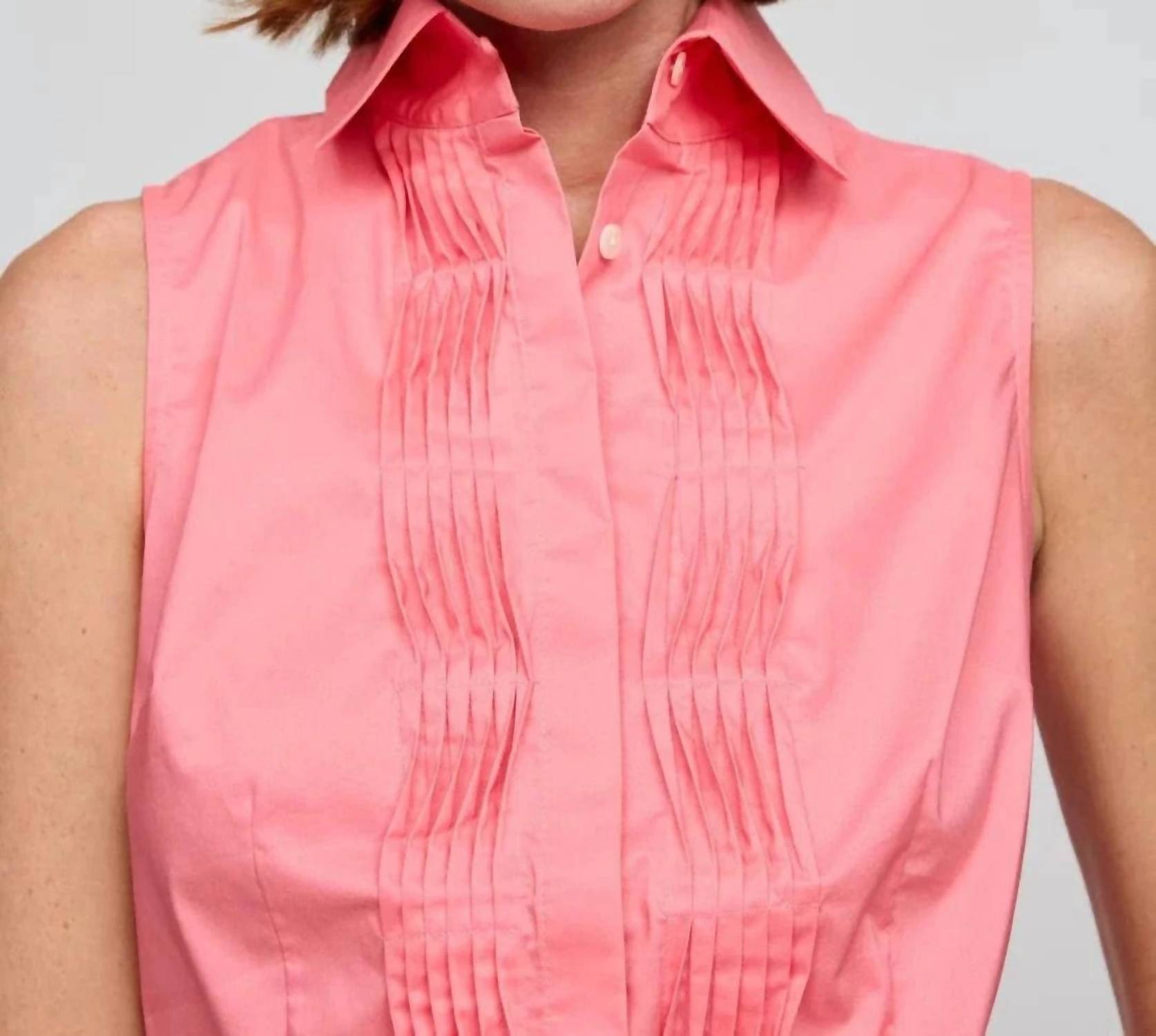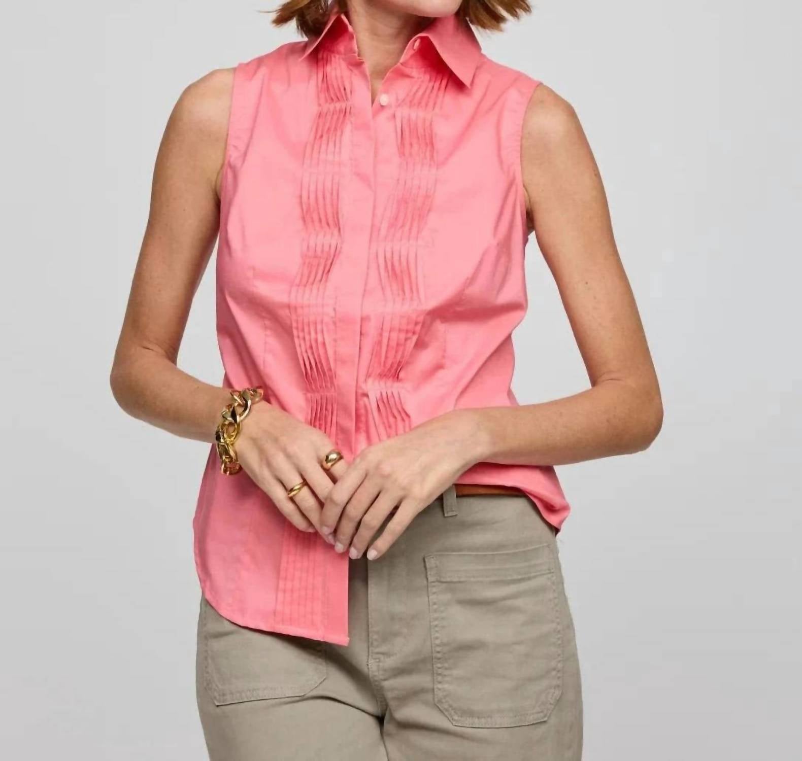 Дополните свой летний гардероб рубашкой без рукавов Hinson Wu Lilith яркого оттенка Candy Coral. Изготовленная из изысканной эластичной хлопковой смеси, она отличается гладкой, отполированной поверхностью. Состав: 61% хлопка, 34% полиэстера и 5% спандекса, что обеспечивает идеальный баланс комфорта, прочности и эластичности. Эта импортная модель приталенного кроя отличается высоким воротником и перекрученными защипами вдоль передней планки, застежкой на пуговицы. Рубашка легко поддается уходу благодаря машинной стирке.