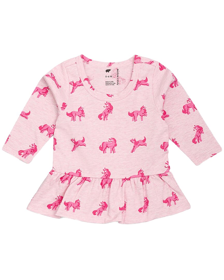 Представляем футболку Monica + Andy с баской - незаменимое дополнение к гардеробу любой девочки! Этот очаровательный топ с очаровательными розовыми единорогами и изящной оборкой на баске добавит немного игривости в повседневные наряды. Изготовленный из 100% органического хлопкового трикотажа, этот топ не только милый, но и приятный к коже вашего ребенка. Длинные рукава обеспечивают дополнительное тепло и комфорт, поэтому он идеально подходит для ношения в течение всего дня. Эта стильная вещь импортного производства, которую можно стирать в стиральной машине, легко ухаживать. Она обязательно станет любимой вещью в гардеробе вашей малышки.
