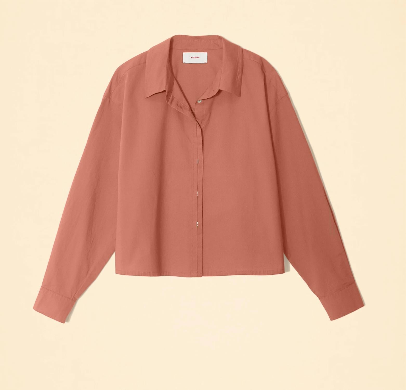 Представляем рубашку Tristan от XIRENA - шикарное дополнение к вашему гардеробу в изысканном глиняно-коричневом оттенке. Эта укороченная рубашка с длинным рукавом изготовлена из 100% хлопка Avalon и дополнена потайной застежкой на пуговицы спереди и встречной плиссировкой сзади для дополнительной стильной носки. Рубашка, разработанная в Лос-Анджелесе, имеет идеальную посадку по размеру. Уход за ней не составит труда: машинная стирка в холодной воде, деликатный режим, сушка в стиральной машине при низких температурах. Рост модели 178 см, размер S.
