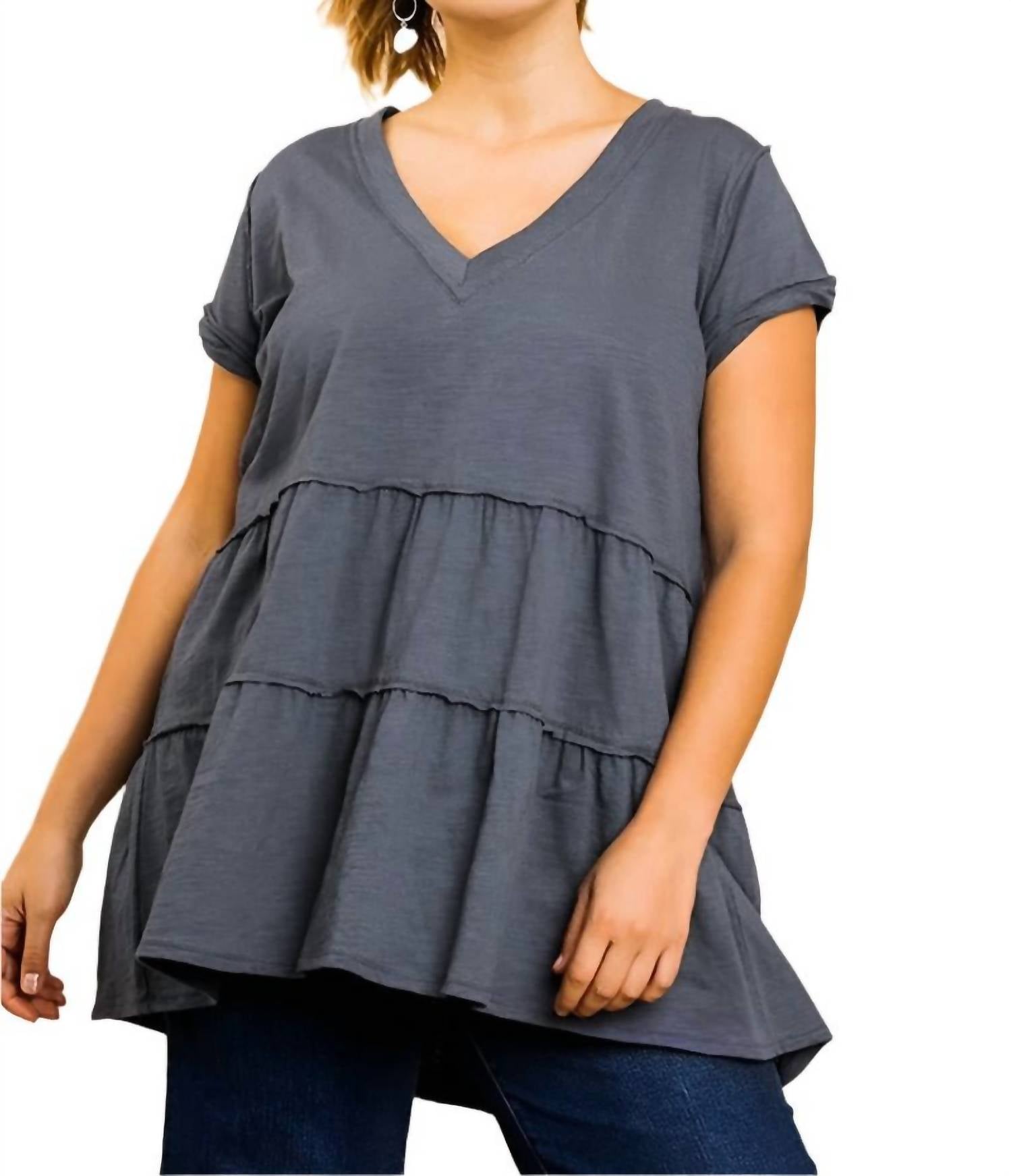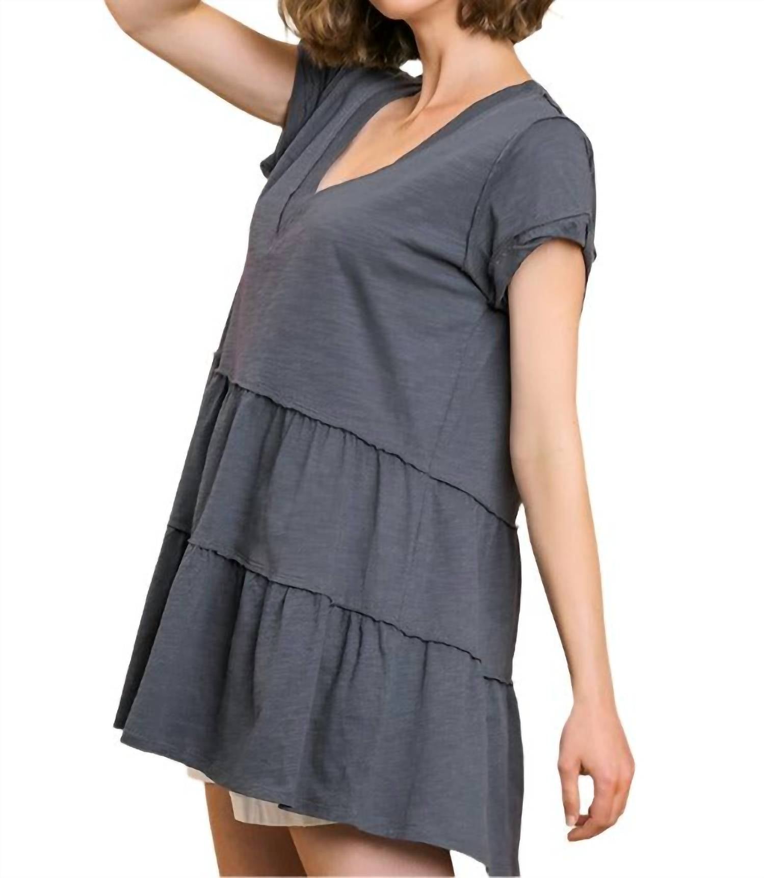 Откройте для себя непринужденную элегантность в тунике Slate Tiered Ruffle от Umgee, созданной для максимального комфорта и стиля. Эта туника с короткими рукавами-манжетами и привлекательным V-образным вырезом дополнена лифом А-силуэта с многоярусными оборками. Состав: 100% хлопок. Страна происхождения: импортная. Застежка: надевается. Уход: ручная стирка в холодной воде.