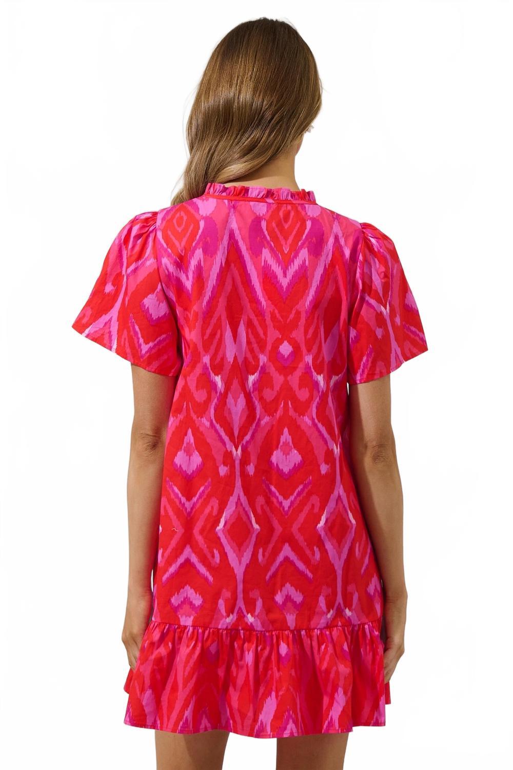 Комфортное и элегантное платье, которое вы будете носить круглый год. Представляем мини-платье Blevin Ikat Celeste от SUGARLIPS - яркое дополнение к вашему летнему гардеробу благодаря красно-розовому икату. Это женское платье с короткими рукавами и элегантной длиной мини, дополненное V-образным вырезом и игривым оборкой по низу. Платье изготовлено из 100% хлопка, обеспечивает дышащий комфорт и идеально подходит для отдыха в стиле бохо-шик. Застежка - на застежку. Наслаждайтесь практичностью карманов и стильной непринужденностью.