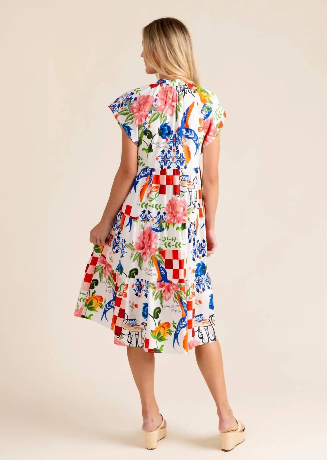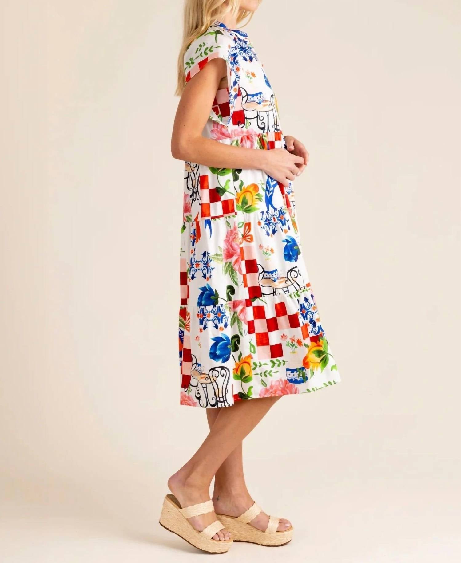 Платье миди настолько универсально, что варианты его ношения безграничны. Дополните свой гардероб платьем Pippa от Alden Adair - очаровательным платьем с принтом «Амальфи» для ярких летних случаев. Платье с короткими рукавами и многоярусной юбкой миди идеально подходит для свадеб и торжественных мероприятий. Платье из мягкой хлопковой смеси имеет А-образный силуэт и украшено оборкой на V-образном вырезе. Застежка-липучка обеспечивает удобство ношения. Инструкция по уходу: машинная стирка и сушка в стиральной машине.