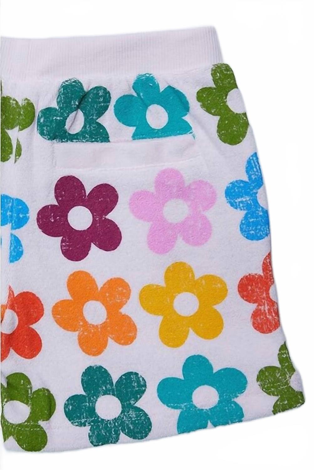 Шорты Chaser для девочек с карманами и оборками - очаровательное дополнение к гардеробу, особенно летом. Эти шорты с эластичным поясом и широкими оборками на штанинах обеспечивают комфорт и стиль благодаря игривому цветочному узору в радужных тонах на фоне, напоминающем сахарную вату. Они изготовлены из смеси хлопка (50% хлопка, 38% полиэстера и 12% вискозы) и практичны благодаря боковым карманам и прорезному карману сзади. Уход прост: машинная стирка и сушка в стиральной машине при низкой температуре.