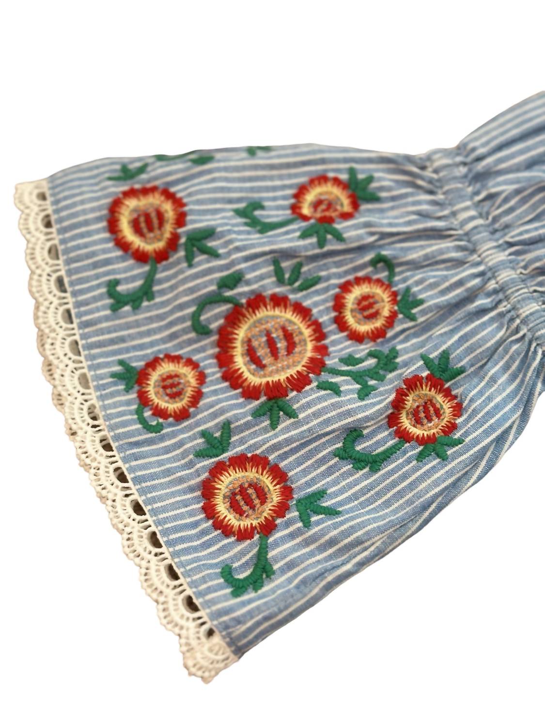 Платье Verga Boho для девочек от Blu ; Blue идеально подходит для весенних мероприятий и праздничных вечеринок благодаря очаровательному полосатому узору и цветочной вышивке. Платье выполнено в стильном стиле бохо-шик и дополнено рукавами-воланами, которые придают ему особый шарм. Разноцветный дизайн добавляет игривости игривости в честь Дня независимости. Насладитесь непринужденной элегантностью и позвольте вашему малышу сиять в этом очаровательном наряде.