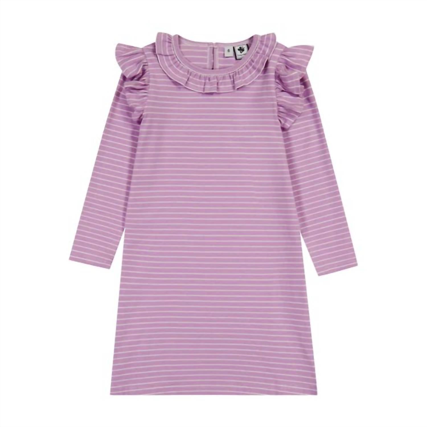 Представляем платье Luna Ruffle Dress от Busy Bees - прекрасный выбор для весеннего гардероба вашей малышки. Это платье в полоску лавандового цвета украшено очаровательными оборками на плечах и воротнике, которые дополняют изысканный А-образный крой. Платье изготовлено из 100% хлопка и обеспечит комфорт и стильный вид во время всех школьных приключений. Уход: можно стирать в стиральной машине.