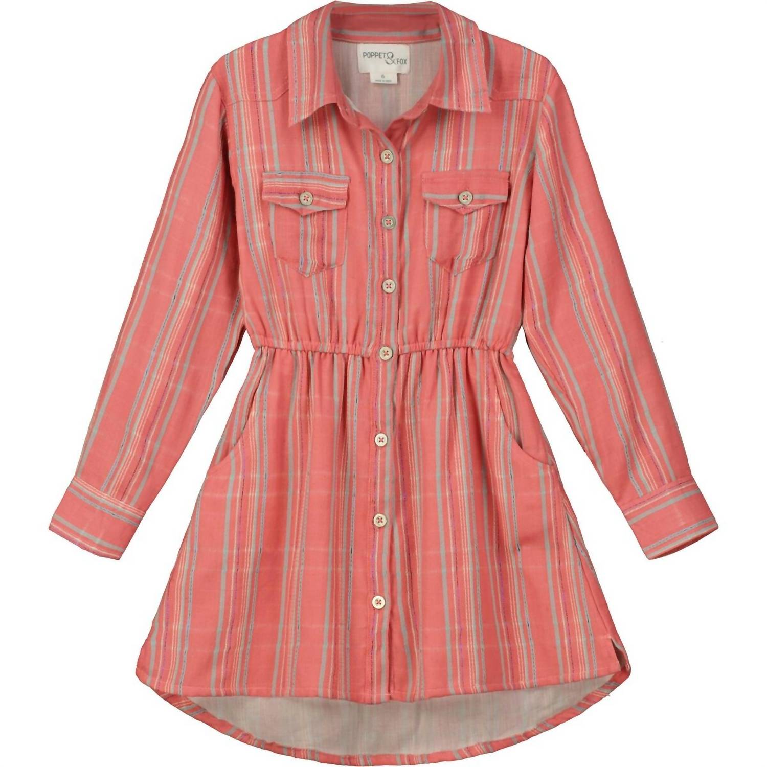 Детское платье-рубашка в лососевую полоску Dobby Multicolor POPPET & FOX
