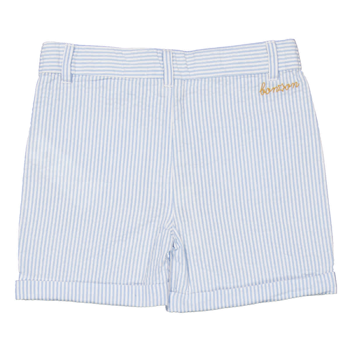 Детские шорты Bonton Kids. Категория: Шорты. Цвет: синий. Детские шорты Bonton Kids Farah в полоску с карманами в форме сердца. Хлопковые шорты с нежно-голубыми полосками, карманами в форме сердца с фирменной вышивкой, шлевками для ремня, застежкой на пуговицы и отворотами. 100% хлопок.