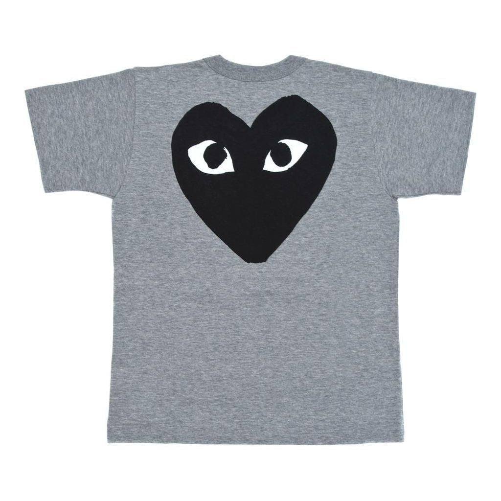 Серая хлопковая футболка с принтом логотипа в виде сердца от COMME DES GARÇONS PLAY KIDS. Круглый вырез, короткие рукава и прямой подол.
