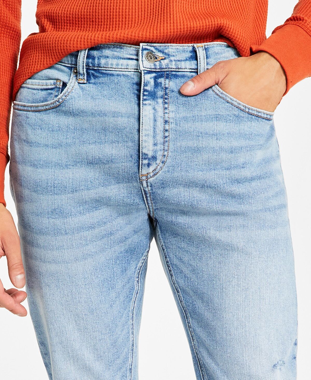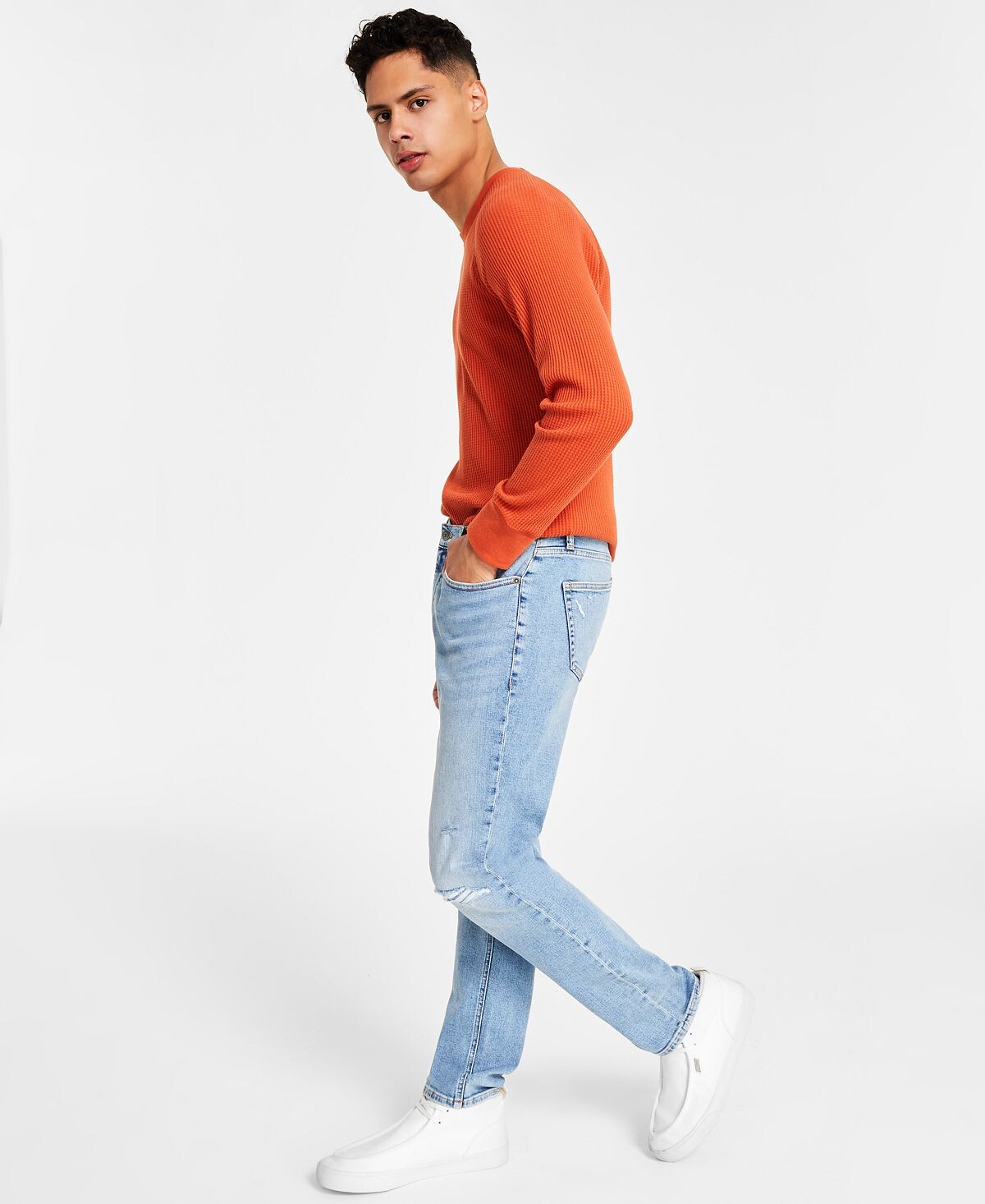 Придайте своему повседневному образу ощущение поношенности с помощью классных потертых, выцветших и разрушительных деталей на этих джинсах узкого кроя Melbourne от Sun + Stone.