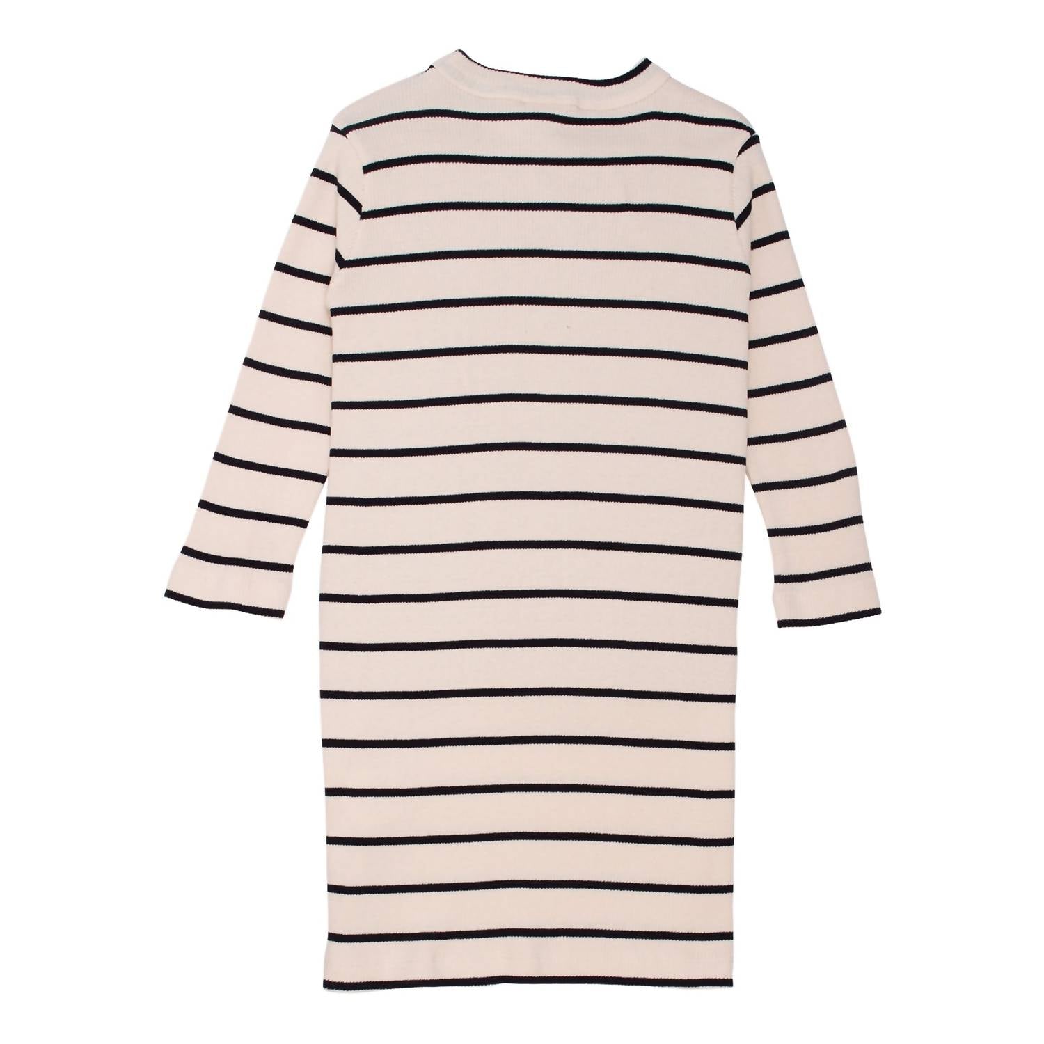 Представляем женское платье-трубу Luna от Wynken - незаменимую повседневную вещь в стильных бежево-черных полосках. Платье с длинными рукавами, выполненное из мягкого хлопкового трикотажа в рубчик, отличается классическим кроем, обеспечивающим комфорт и стиль. Обратите внимание на небольшой ромбовидный значок на груди, который добавит образу уникальности.